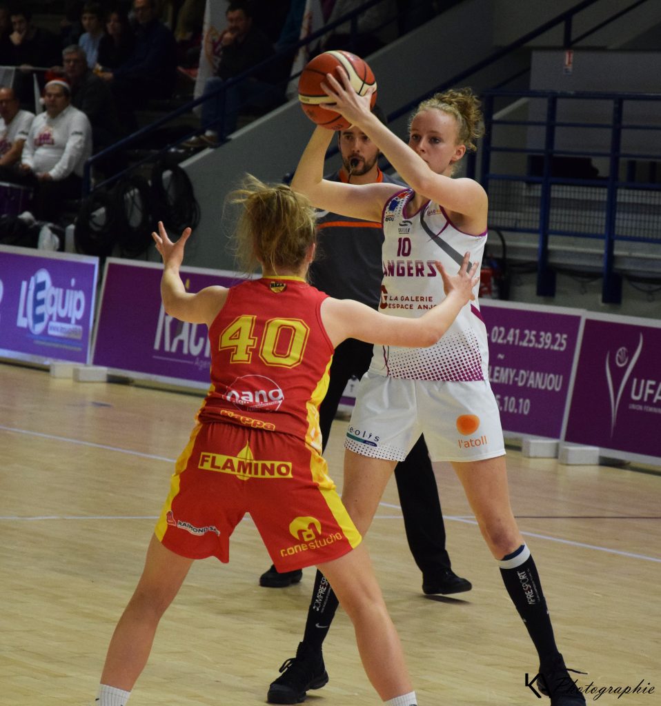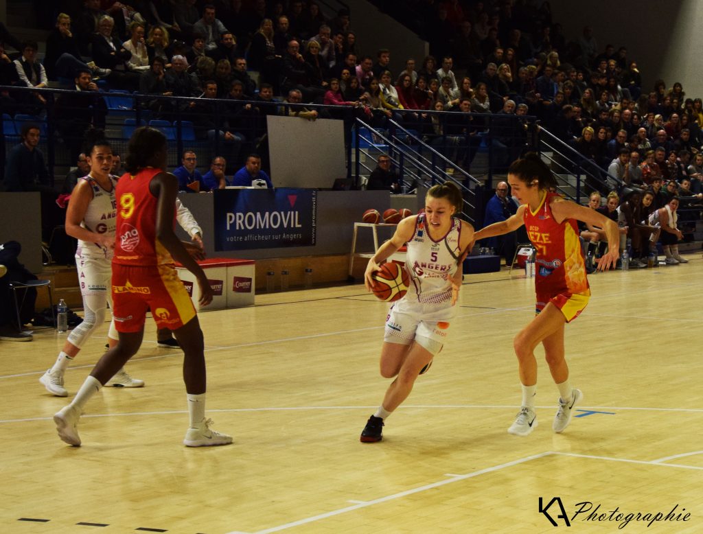 Le match commence tambours battant pour les deux adversaires du soir salle Jean Bouin. Sous l’impulsion d’une très adroite Lorraine LOKOKA, les Angevines démarrent rapidement par un jeu rapide performant. Comptant sur les balles perdues et le manque d’adresse près du cercle, les locales prennent l’avantage au score et se permettent même de compter treize points d’avance à la fin du premier quart-temps. Un jeu complet et une défensive avec le couteau entre les dents font de cette équipe angevine les favorites pour cette rencontre. Avec déjà quinze rebonds, dont sept offensifs, autant dire que le travail de l‘ombre est bien réalisé. (fin du premier quart-temps : 26-13)