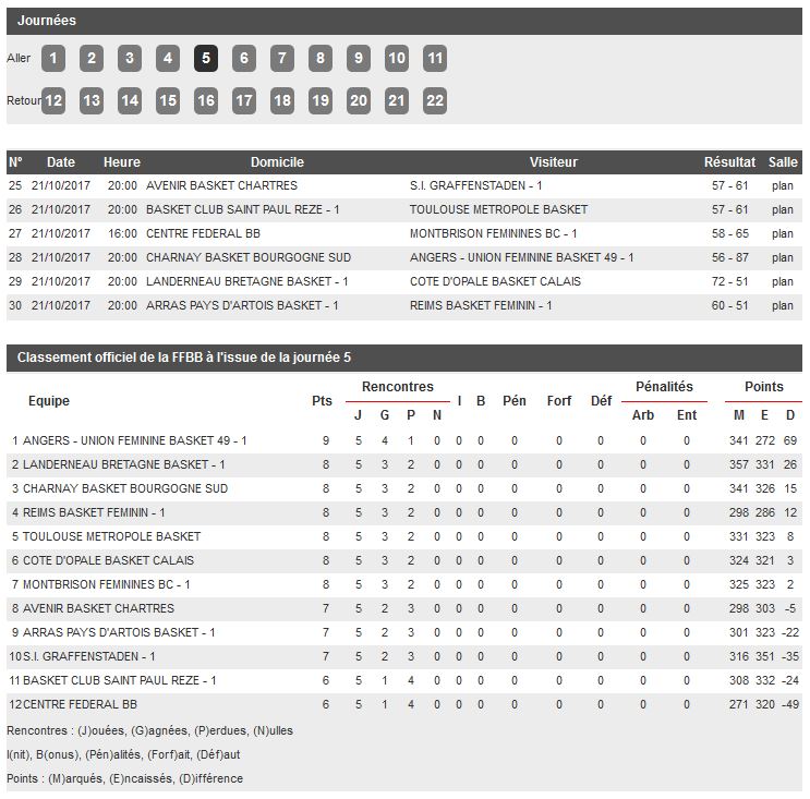 Championnat de Ligue Féminine 2, 5e journée.