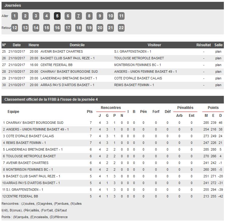 Charnay Basket Bougogne Sud (1er) – Union Féminine Angers Basket (2e)