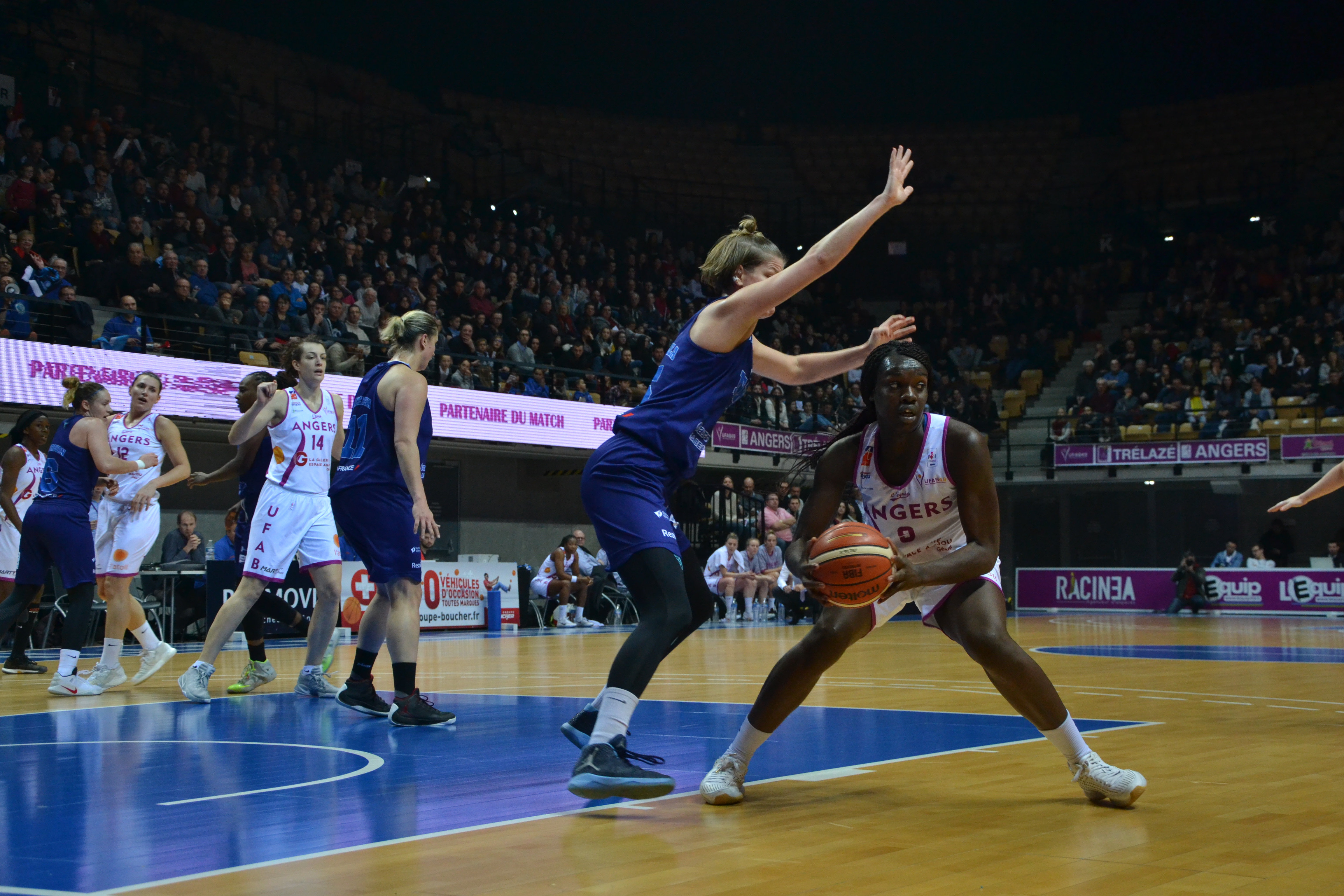Les visiteuses mettaient beaucoup plus d’intensité au retour des vestiaires et l’UFAB était à la peine. MURPHY et CUZIC muselées, WALLACE peu adroite, Nantes reprenait l’avantage (45-46, 30’). Le combat gagnait encore en intensité. Katherine PLOUFFE, la Canadienne de Nantes, sur laquelle il est très difficile de défendre faisait mal, surtout aux lancers francs. C’est alors une grande Clarince DJALDI-TABDI qui allait prendre les choses en main (8 points, en dix minutes, 18 au total). Angers repassait devant, dans une atmosphère qui devenait irrespirable (52-50, 33’, puis 59-58, 36’). L’UFAB allait magnifiquement négocier le money time, terminé par un 7-0, et un panier primé, le seul du match de Lizanne MURPHY.
