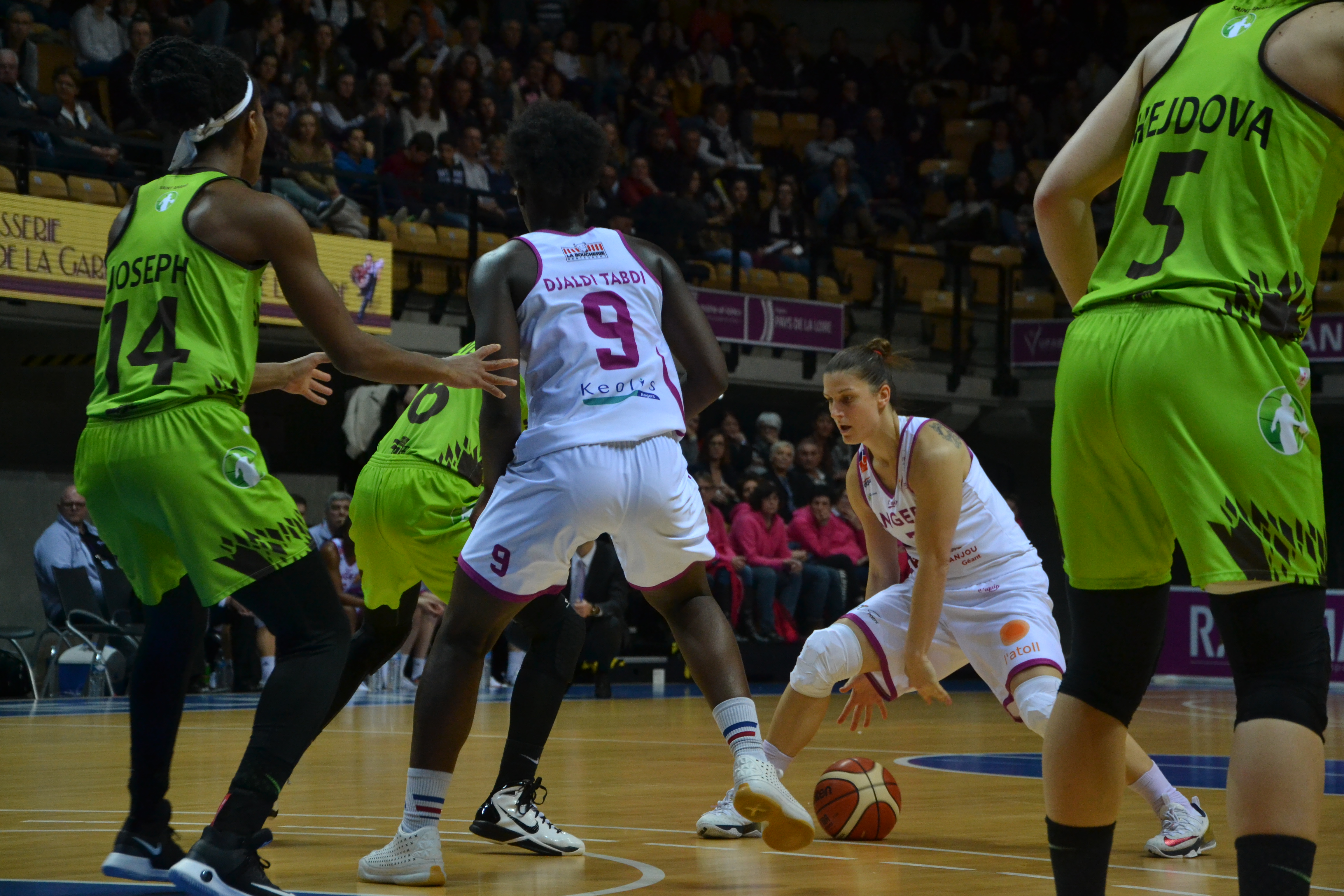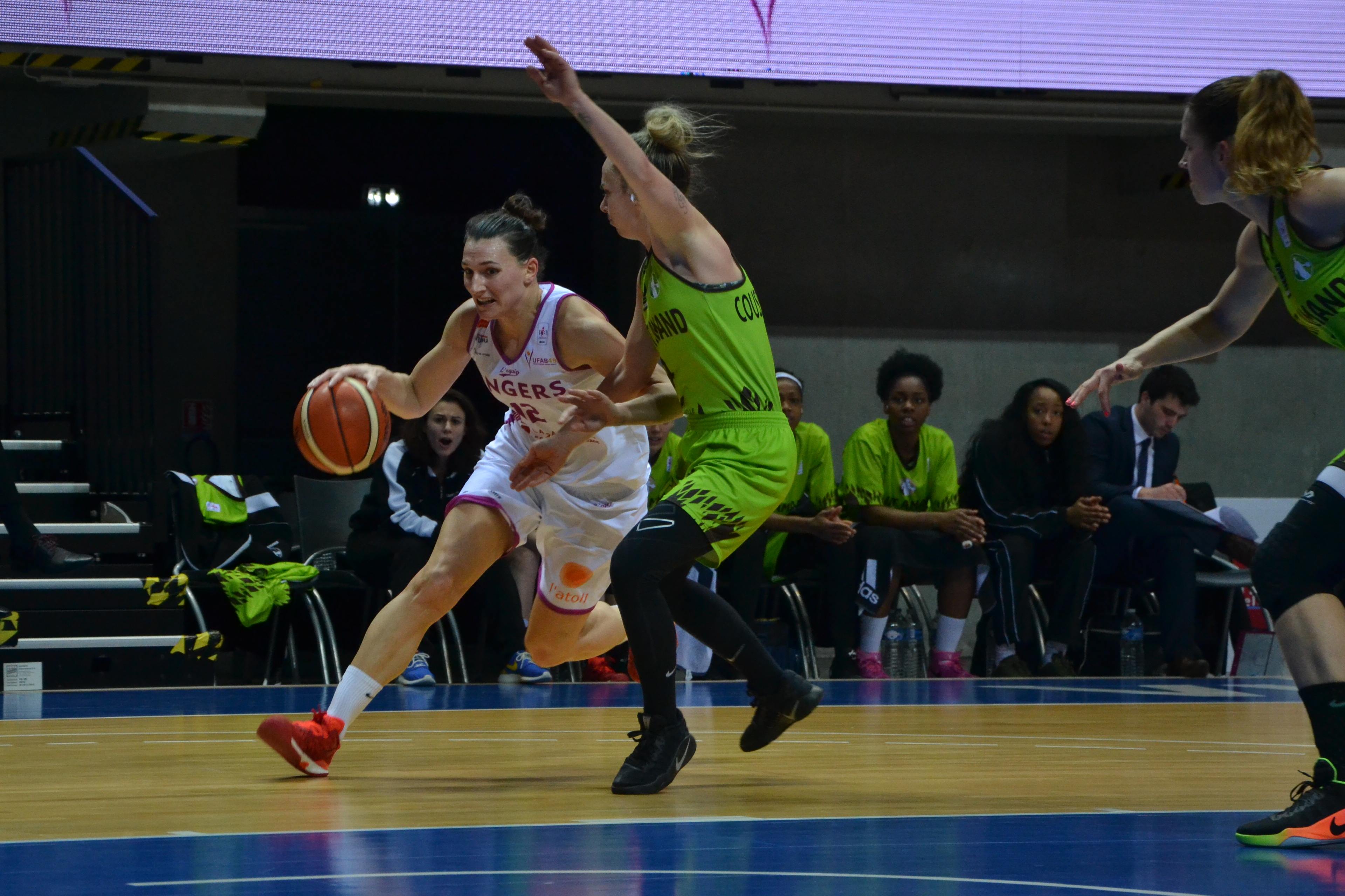 Le match débute timidement et il faut attendre 1’35 pour voir les premiers points du match. Le Hainaut impose sa maîtrise collective et seule Wallace tire son épingle du jeu en inscrivant les six premiers points d’Angers (10-18, 10′). Dans le deuxième quart-temps, les deux tirs extérieurs de Stievenard et Deprez font mal aux Angevines (14-26, 12’34). A trente-cinq secondes de la mi-temps, Hejdova clôture la marque d’un nouveau tir à trois points pour son équipe (22-39). Au retour des vestiaires, le manque d’agressivité d’Angers fait la part belle à son adversaire qui compte même vingt points d’avance (34-54, 26’19), puis (36-56, 27’18). David Gautier demande alors un temps mort pour remobiliser ses troupes. Coaching gagnant, puisque les Angevines enchaînent avec un 12-0 et reviennent à dix longueurs, à trente secondes de la fin du troisième quart-temps, sur des réussites de Paget, Ivanovic et Pochet à la suite d’une interception (46-56). Angers est bien plus agressif dans la raquette et cela se voit au tableau d’affichage, où le retard se grignote petit à petit. A la suite d’un tir à trois points d’Ivanovic, l’UFAB revient même à trois longueurs, dans le money-time (63-66, 38’50). Malheureusement, sur le gros temps fort angevin, Hejdova claque un trois points venu d’ailleurs, ce qui tue littéralement la fougue Angevine et par la même occasion, tous ses espoirs de victoire, à trente-cinq secondes de la fin du match (63-70). Les derniers instants du match seront un concours de lancers francs, qui ne changeront rien à la finalité du score final (65-74). Angers pourra s’en vouloir d’avoir manqué son début de match, car le Hainaut était prenable.