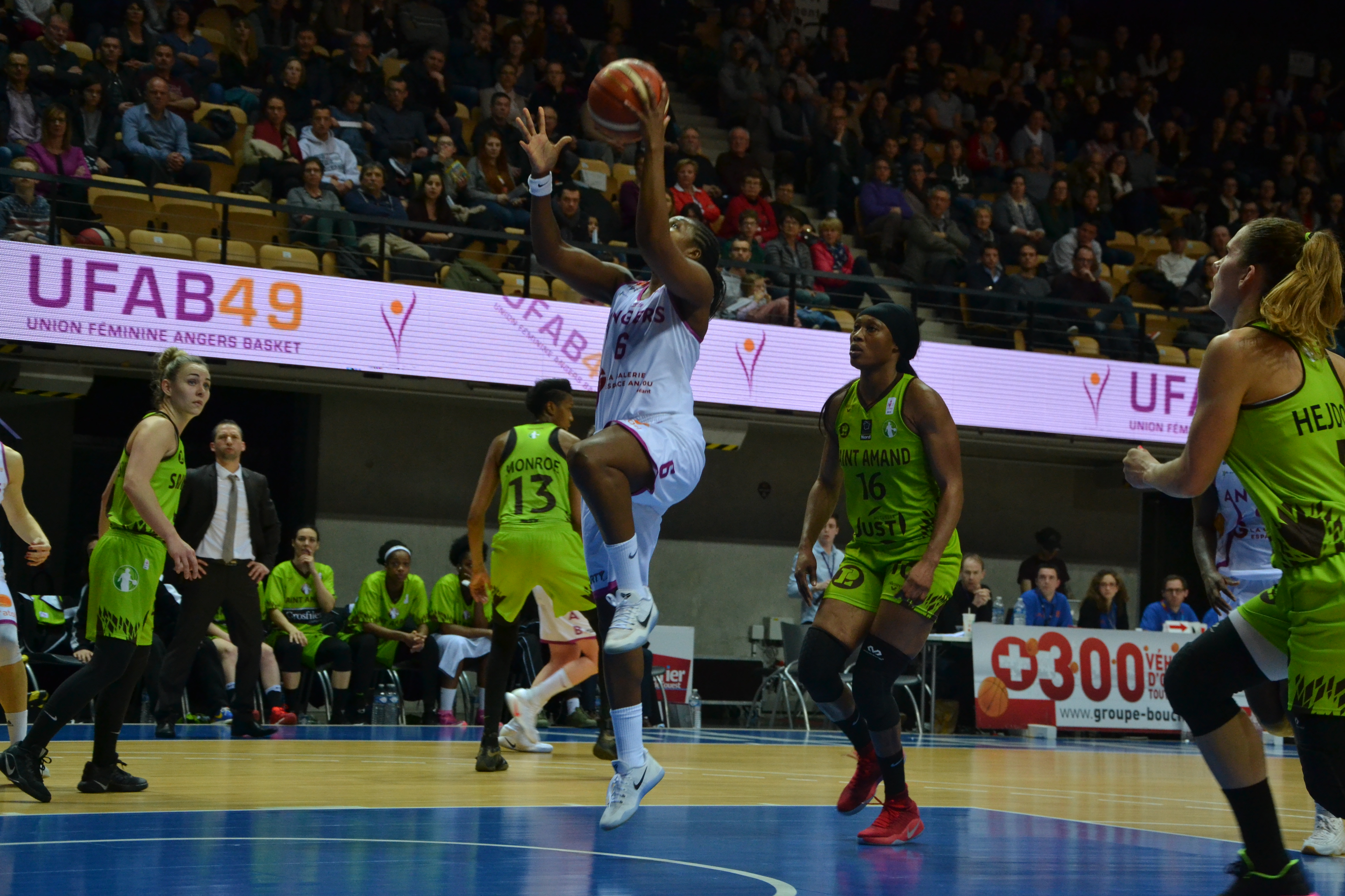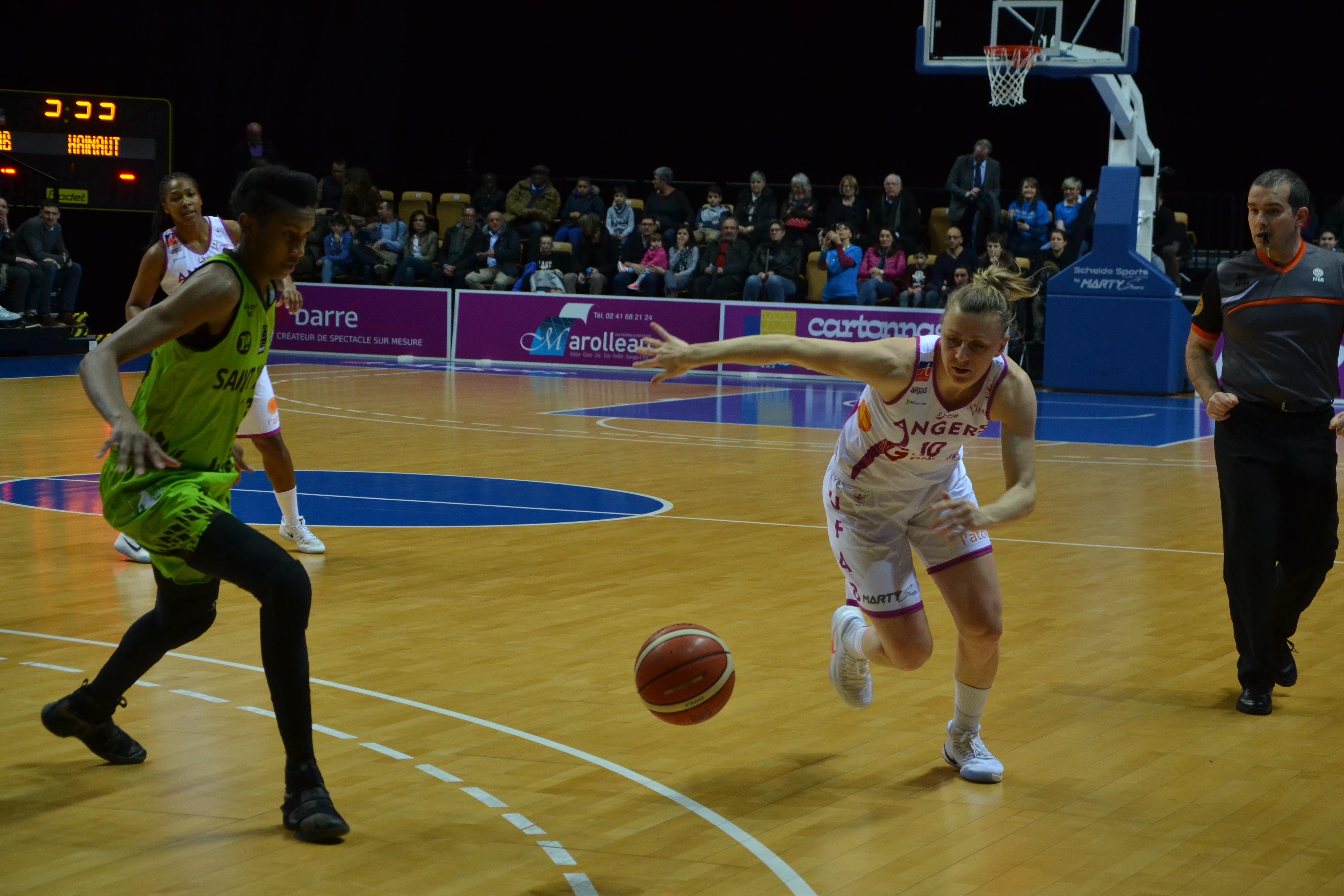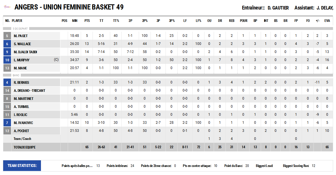 Union Féminine Angers Basket – Union Hainaut Basket Saint-Amand : 65-74 (MT : 22-39).