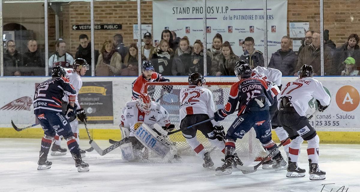 Le début de match est assez timide, avec peu de lancers sur les cages adverses. Il faut attendre une remise en jeu dans le camp chamoniard, pour voir l’ouverture du score. Sur un shoot plein axe, Gary Levêque trouve la faille face à un gardien de but masqué par ses défenseurs, il est assisté de Kévin Igier et de Loïc Farnier (1-0, 7’56). Cinq minutes plus tard, Chamonix va égaliser un peu contre le court du jeu. En effet, les visiteurs vont profiter d’une supériorité numérique en leur faveur pour marquer par l’intermédiaire de Perry Darrisso, oublié devant la cage, assisté de Vojtech Kloz et de Cody Freeman (1-1, 13’01). Les Angers vont reprendre leur marche en avant dans la deuxième période et profiter à leur tour d’une supériorité numérique. La paire Cody Campbell et Maxime Lacroix remonte le palet en zone offensive, puis elle sert Danick Bouchard, qui contourne la cage par la droite et surprend Richard Sabol, en lui glissant le palet dans le soupirail (2-1, 32’18). A la suite d’une interception en zone neutre, Campbell a l’occasion de tripler la mise, mais il manque son face-à-face avec Sabol (35’10). Il manquera à nouveau son duel, à la suite d’un superbe mouvement individuel (50’27). Danick Bouchard a lui aussi l’occasion de creuser l’écart, en récupérant un palet en zone neutre, mais face au portier adverse, il tire au-dessus (53’29). On rentre dans le money-time et le score est toujours aussi indécis. Dans la dernière minute, Angers a l’avantage d’être en supériorité numérique. Après un temps-mort, Chamonix tente le tout pour le tout et sort son gardien de but. Et sur un contre, Clément Masson, l’ancien Chamoniard (il a passé huit saisons sur les couleurs de Chamonix), récupère le palet en zone neutre et part seul au but, pour inscrire le but libérateur dans une cage vide, à six secondes du buzzer (3-1, 59’54). Victoire logique et méritée pour les Angevins, même si elle aura été longue à se dessiner.