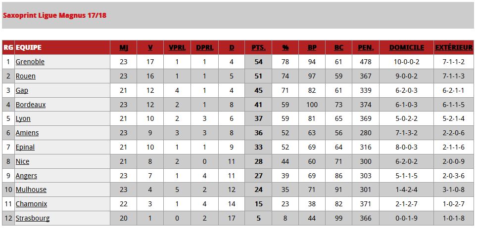 Après cinq victoires consécutives à domicile (Amiens, Strasbourg, Angers, Lyon et Chamonix), mais restant sur une défaite à Grenoble (2-1), les Dragons de Rouen sont toujours une équipe difficile à manœuvrer, surtout à domicile. Angers devra faire preuve de la même vigilance défensive, ainsi que du même réalisme offensif et le même état d’esprit que contre Amiens, pendant les soixante minutes de la rencontre, si les joueurs de Brennan Sonne veulent faire jeu égal avec son adversaire et tenter de créer l’exploit. A noter, les absences de Mathieu Gagnon et de Robin Gaborit, qui ne seront pas de la partie. Les retrouvailles s’annoncent donc disputées, ce mardi soir !