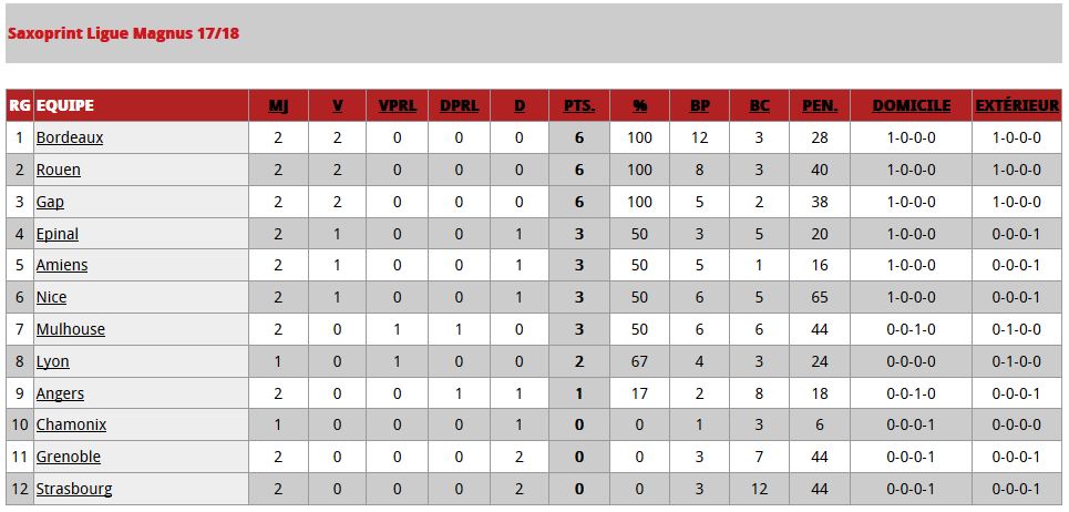 Résultats de la 2ème journée de SAXOPRINT Ligue Magnus :