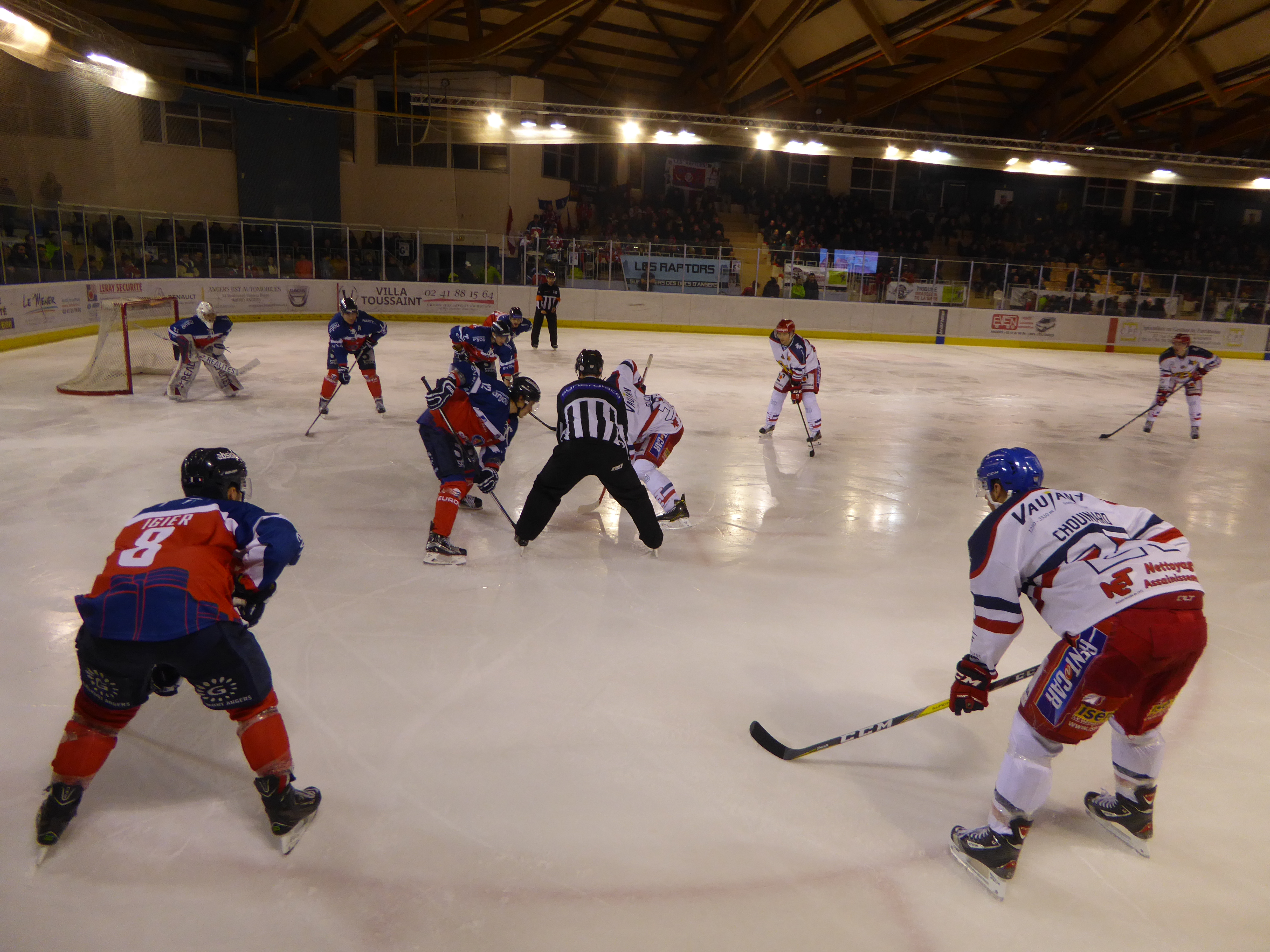 Il ne fallait pas arriver en retard à la patinoire du Haras, avec l’entame de match catastrophique des Angevins ponctué par deux buts, en moins de cinq minutes, des Grenoblois Abramov (0-1, 1’53), puis Chouinard (0-2, 3’47). Abramov en remet une couche en signant un doublé, même si ce dernier but semble être entaché d’une faute (0-3, 16’05). Après un tiers-temps, le match est déjà quasiment plié, tellement la supériorité Grenobloise est réelle. Les vestiaires ont dû trembler, car les Ducs reviennent transfigurés et avec de meilleures intentions. Campbell réduit de score sur l’engagement (1-3, 20’55). Malgré les assauts répétés Angevins, Horak, le gardien de but adverse tient la baraque. Le dernier tiers-temps est un véritable combat physique, parfois à la limite de la régularité et souvent sanctionné par des pénalités, fatales pour les locaux. Logiquement, les Ducs réduisent à nouveau la marque par Lessard (2-3, 45’21). Malheureusement, les Brûleurs de Loup calment les ardeurs Angevines, en reprenant deux buts d’avance dans la foulée par Golocic (2-4, 45’44). C’est un véritable coup sur la tête, pour les Ducs. Les esprits s’échauffent et Angers sera beaucoup trop dans la pénalité pour espérer inquiéter son adversaire, à l’image de son capitaine Julien Albert, prenant 5’+20′ de pénalité, et rentrant directement au vestiaire. Angers tient bon, mais ne profite pas des contres. Gaborit intercepte un palet, part seul au but, mais Horas s’interpose (50’07). En fin de rencontre, les gardiens de but prendront le pas, sur les attaques adverses. Angers ne se sera jamais remis de son entame de match, malgré son sursaut d’orgueil, face à une très belle équipe de Grenoble, qui sera très certainement, un candidat sérieux, pour le titre de champion de France, cette saison.