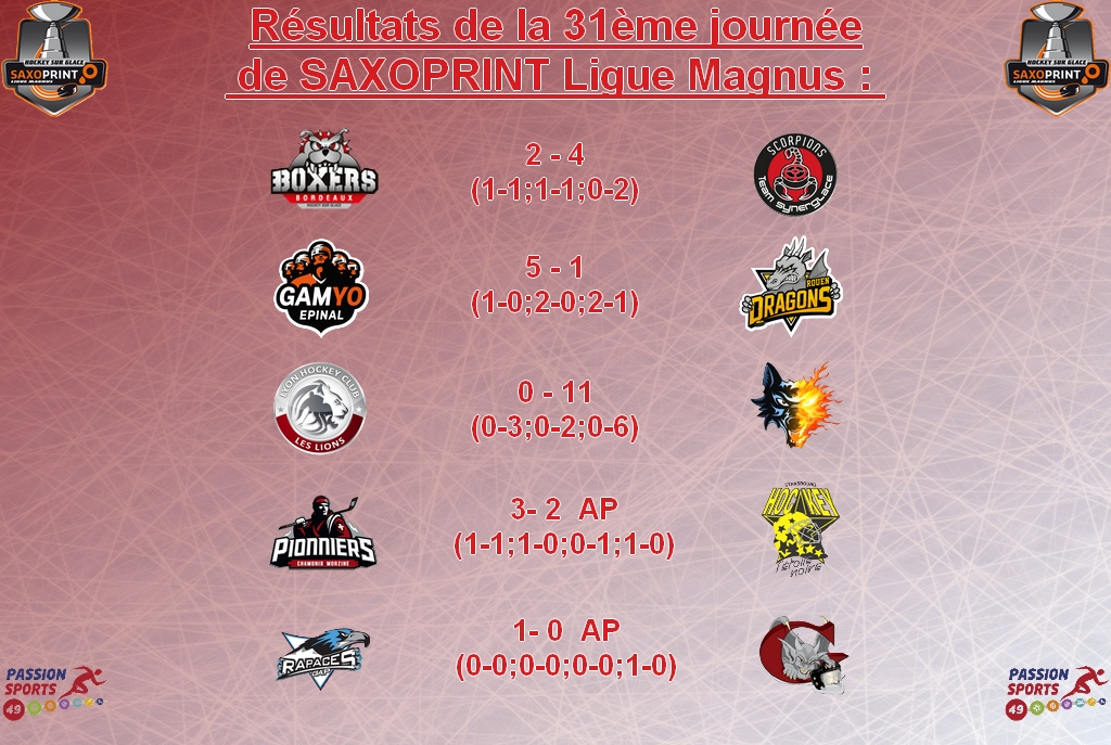 Côté Angevin, Brett Sonne blessé et Julien Albert suspendu étaient absents. Le match fut à rebondissements et le même scénario final, que lors de la première opposition de la saison, à Nice (défaite 4-3, ap.). Angers a mal débuté le match en étant mené par quatre buts à un, dont deux buts un moins de cinq minutes. Globalement, les Angevins ont profité de leur momentum pour remonter au score, mais ils auront fait preuve de quelques déchets techniques dans le jeu et d’un manque rigueur en matière de pénalités. Malgré une remontée angevine dans les deux tiers-temps suivants, où ils arracheront la prolongation dans la dernière minute, il faudra seulement quelques secondes aux Niçois pour l’emporter à la mort subite de la prolongation (6-5). Les hommes de Sutor auront profité de leur réalisme pour gagner dans la partie.
