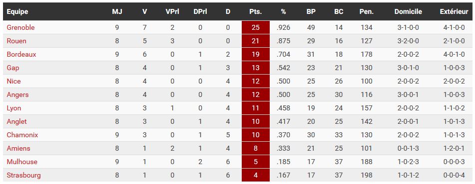 Les pénalités : huit minutes sur quatre infractions pour les Ducs d’Angers ; huit minutes sur quatre infractions pour l’Étoile Noire de Strasbourg.