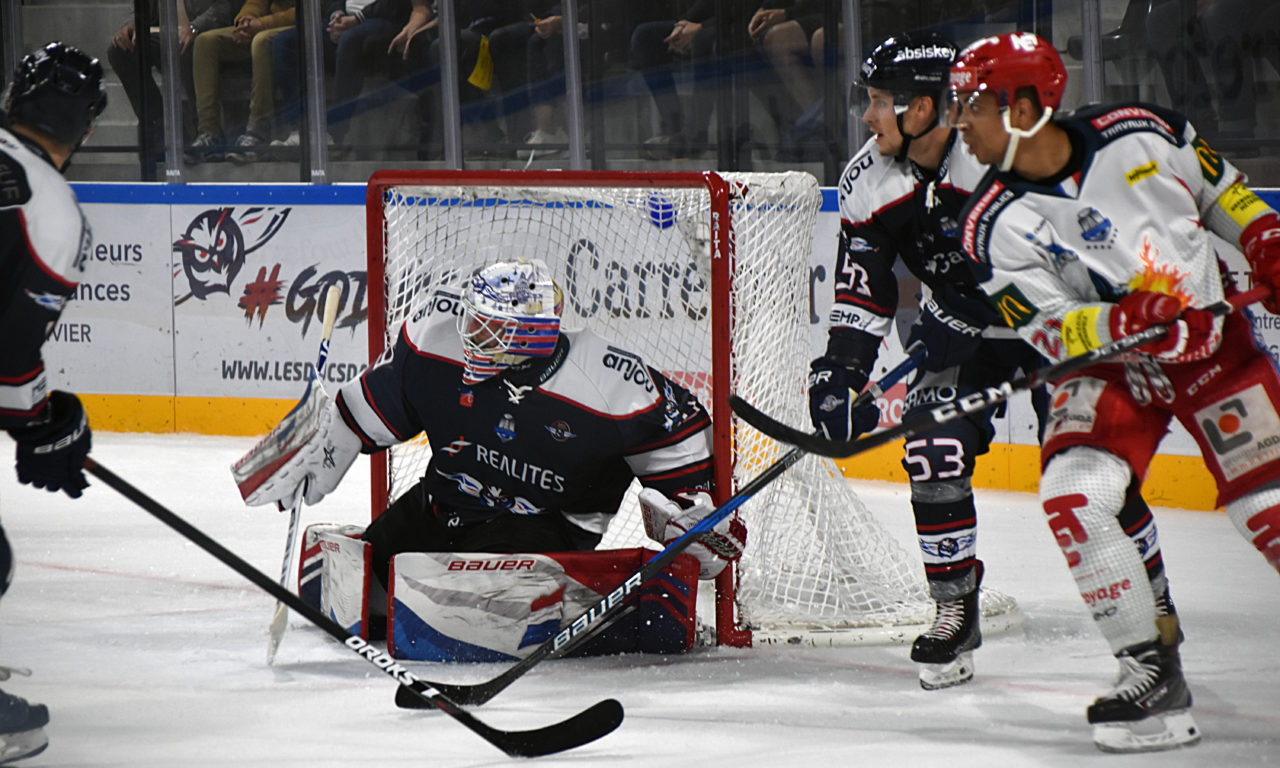 Les Angevins vont bien débuter le match, basculant après le premier tiers-temps, avec deux buts d’avance. Sur un service de Riley Sweeney, Danick Bouchard ouvre le score (0-1, 8’00), puis Angers va profiter d’une supériorité numérique pour doubler la mise par Cody Campbell, assisté de Robin Gaborit et de Patrick Coulombe (0-2, 15’47).
