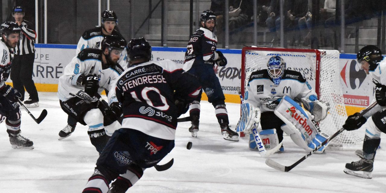 Après un début de match équilibré, les défenses prennent le pas sur les attaques adverses. Il faut attendre les dernières minutes du premier tiers-temps pour voir des situations dangereuses. Maxime Lacroix manque son face-à-face avec Jimmy Darier, le portier adverse. En face, à cinquante-cinq secondes de la fin de la période, à la suite d’une action ultra rapide gapençaise, Florian Hardy, le gardien de but angevin, sort une parade exceptionnelle, où le public aura retenu son souffle. Au retour des vestiaires, Julien Albert va ouvrir le score, sur un service d’Olivier Latendresse (1-0, 21’30). Ensuite, à la suite d’un beau travail de Clément Masson derrière la cage, ce dernier sert plein axe Maxime Lacroix, qui d’une reprise instantanée, double la mise pour les Ducs d’Angers (2-0, 23’01). Le coach gapençais demande le temps-mort dans la foulée. Olivier Latendresse tente un lancer en direction de la lucarne, mais Darier est vigilant et capte la rondelle (26’46). Trente secondes plus tard, c’est au tour de Florian Hardy d’effectuer un super arrêt. Puis, bien servi en profondeur, Patrick Coulombe se présente face au gardien de but adverse, mais ce dernier se montre à nouveau décisif face au capitaine angevin. Gap a l’occasion de réduire le score, mais Roberts Jekimovs trouve le poteau. Mais, huit secondes plus tard, Gap va enfin trouver la faille, par l’intermédiaire de Julien Correia (2-1, 28’08), alors que les visiteurs étaient à la limite de la rupture. Mais Angers va reprendre deux buts d’avance, moins d’une minute plus tard. Sur un tir de loin de Neil Manning, Cody Campbell est sur la trajectoire et dévie le palet dans les filets (3-1, 29’01). Dans la troisième période, les Angevins sont sérieux défensivement, avec un Florian Hardy solide dans son but, surtout lors de deux infériorités numériques. Olivier Latendresse a l’occasion d’inscrire un nouveau but, suite à une mauvaise relance adverse, mais il manque son duel avec le gardien de but adverse (47’16). Gap va tenter le tout pour le tout pour revenir au score, en sortant son gardien de but à deux minutes de la fin, au profit d’un joueur de champ supplémentaire. Et c’est à la toute dernière seconde et sur une récupération défensive de Robin Gaborit, que ce dernier marquera un dernier but anecdotique, en cage vide (4-1, 59’59). Mardi prochain, Angers recevra l’équipe de Chamonix.