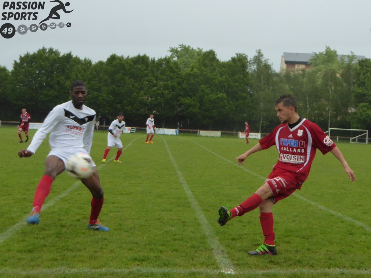 On sent de la tension dans les rangs angevins, avec peu d’occasions en première mi-temps, mis à part une belle frappe des vingt mètres largement au dessus (43e). En face, Challans avec la validation de leur montée en DSR la saison prochaine, joue relâché, mais avec sérieux. Bien lancé en profondeur, Makiese par seul au but, mais sa frappe à l’entrée de la surface est trop enlevée (10e). Ce dernier prend à nouveau le meilleur sur la défense adverse, puis sur le gardien, mais Gomis sauve de justesse, juste devant sa ligne de but (44e). L’Intrépide revient avec plus de détermination en deuxième mi-temps, et fait le siège du camp adverse. D’entrée, Manzola fraîchement entré en jeu, se joue de la défense d’un beau mouvement de dribbles, déborde côté droit, et sert idéalement Marion, qui est trop court pour couper le centre (47e). Levron n’a pas plus de chance sur une frappe à l’entrée de la surface non cadrée (53e). Marion trouve sur un coup franc plein axe, la tête de Levron, que Ledu, le portier vendéen, détourne d’une claquette (55e). Dans tous les bons coups, Levron bute à nouveau sur Ledu, lors d’un face à face (56e). Sa frappe enroulée à l’angle de la surface, est à nouveau détournée en corner par le gardien (60e). Ledu est à nouveau mis à contribution, en détournant d’un beau plongeon, la tentative de Manzola (61e). A force de multiplier les occasions, les angevins finissent par trouver la faille. A la suite d’un corner côté droit et d’une confusion dans la surface, Gomis opportuniste, pousse le ballon au fond des filets (1-0, 67e). Avec cette ouverture du score, les rouges et blancs commencent à reculer dangereusement. Malgré tout, Faber d’une superbe frappe des trente mètres trouve le poteau (85e). Les vendéens répliquent dans la foulée, d’une superbe frappe à l’entrée de la surface, que Guenon le gardien angevin, est tout heureux de voir filer juste au dessus du cadre. La grosse frayeur étant passée, les angevins s’imposent au courage et renouvelleront leur bail en DRH la saison prochaine.