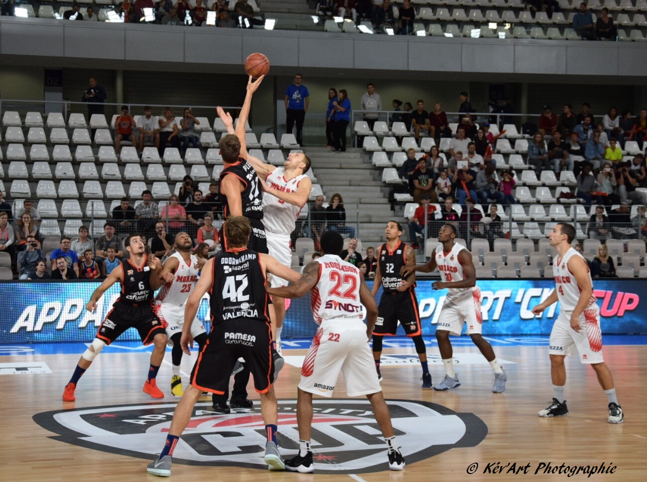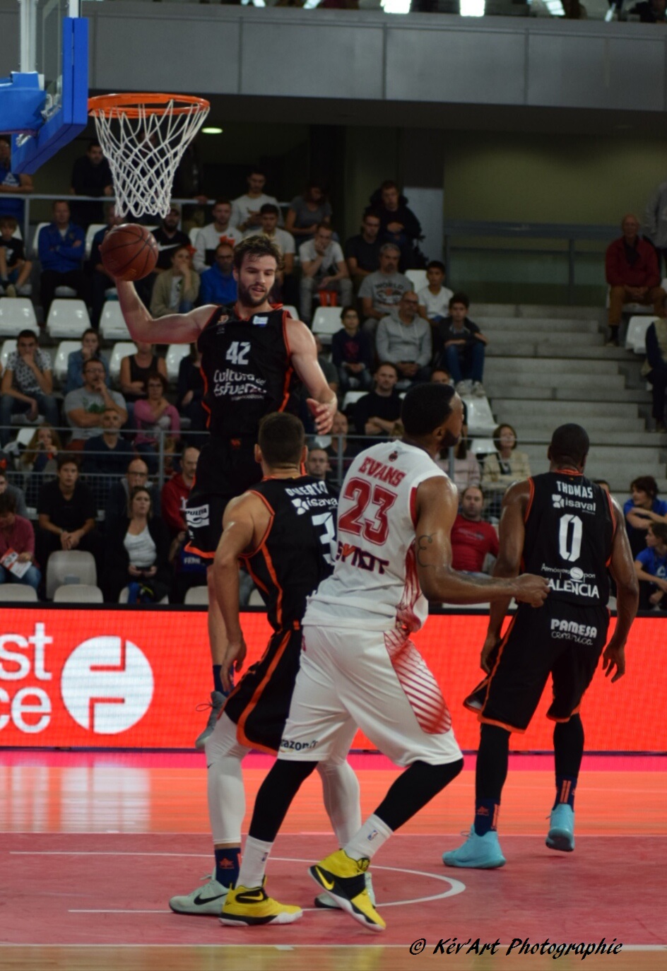 C’est d’abord Valence qui prends les devants de cette partie. Devant une salle encore un peu vide (l’heure de repas y est-elle pour quelque chose ?), les Espagnols vont compter jusqu’à 10 points d’avant sur des adversaires encore bien pâles, sûrement encore fatigués de leur combat la veille (défaite face à Nanterre au bout d’un match à suspense). Le premier quart temps souligne les quelques erreurs défensives et le manque de réalisme monégasque. Mais c’est sans compter sur le coach Mitrovic. Une pause de quart temps et un temps mort plus tard, voici les blancs et rouges qui se lancent à la poursuite de leurs adversaires. Les joueurs de la principauté reviennent à égalité à 48 partout à la mi-temps grâce notamment à un très en forme et très adroit Lacombe.