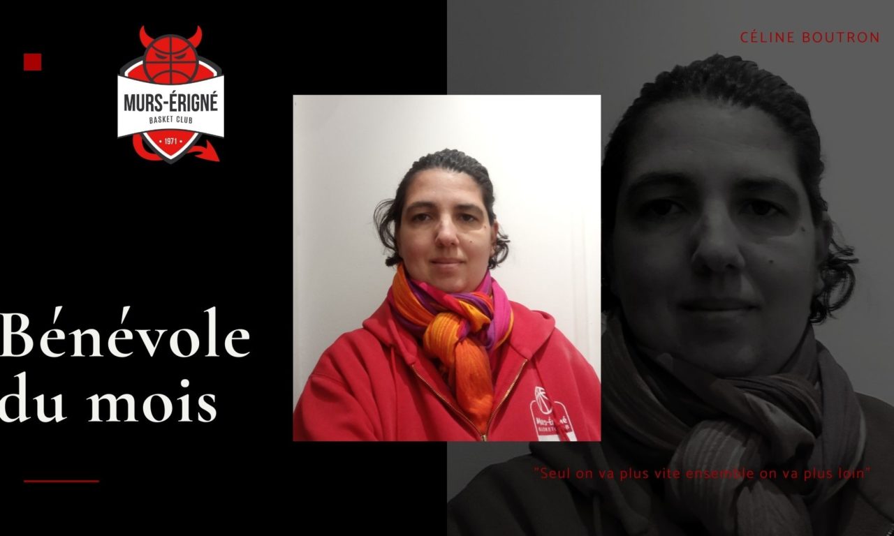 Le Mûrs-Érigné Basket Club vous propose chaque mois de venir à la rencontre d’un ou d’une bénévole du club. Ancien, nouvel arrivé, chaque bénévole est précieux, c’est pourquoi le club a souhaité les valoriser. Ce premier rendez-vous sera avec Céline BOUTRON, visage très connu du club, qui nous parlera de son parcours au sein du MEBC et comment elle a décidé de devenir bénévole au sein du club. Après nous avoir fait partager ses plus beaux souvenirs, elle évoquera le regard qu’elle porte sur ce rôle important dans un club, ainsi que ses missions et du temps consacré chaque semaine. Puis, cette enseignante en mathématiques n’hésitera pas à nous faire partager ses goûts musicaux, pour terminer l’une de ses citations qui lui est chère. Enfin, elle n’oubliera pas un petit mot d’encouragement envers son club.