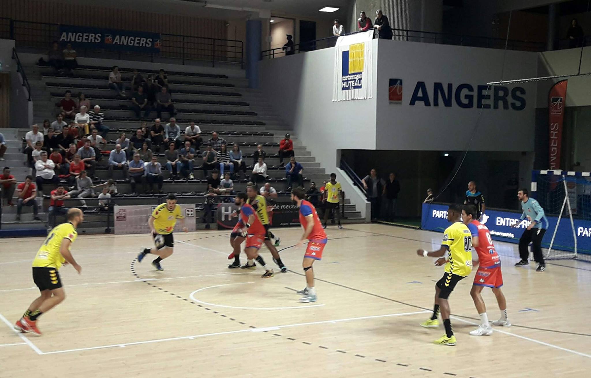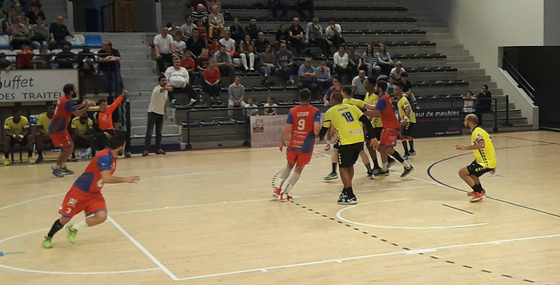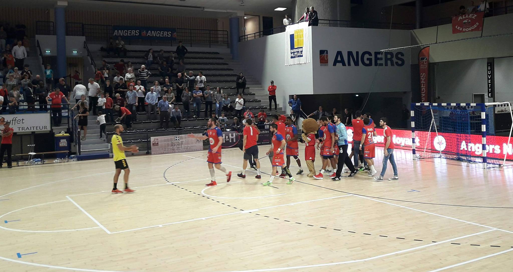 Angers-Noyant rentre mal dans son match (4-2, 3’38). Les locaux sont nerveux avec trois cartons jaunes, pour Gautier de Charrance, Clusel et Parisini. Vandelannoote relance son équipe (3-5, 5’35), mais les Parisiens font toujours la course en tête, jusqu’au tournant du match et l’expulsion de Ségarel (9-9, 15’23). Galas donne pour la première fois du match l’avantage à Angers-Noyant (10-9, 16’56). Malgré tout, le match est équilibré sans qu’aucune des deux équipes ne se détache au score. Gaillard donne deux buts d’avance à Angers, qui maintiendra son avantage jusqu’à la mi-temps (19-17, 30′). Au retour des vestiaires, Vandelanoote donne trois buts d’avance aux rouges (20-17, 30’53). Mais au lieu de tuer le match, Angers-Noyant retombe dans ses travers, avec trop de mauvais choix ou de pertes de balle. Abdul Khudoos remet son équipe dans les tallons des Angevins (21-20, 34′). Le capitaine noyangevin, Antoine Damiens, montre la voie avec deux buts de suite (23-20, 35’29), puis Lusson (24-20, 35’49). El Jammal demande un temps-mort afin de couper l’élan local (24-20, 36’06). Cela va s’avérer payant, puisque la réussite change de camp. Les Parisiens vont infliger un 6-0, où Angers-Noyant va rester bredouille pendant 9’37 exactement, autant dire une éternité ! Il faudra attendre trois arrêts de grandes classes de Salmon et deux buts consécutifs de Clusel pour remettre son équipe dans le sens de la marche (27-26, 49’03). Les dix dernières minutes font s’avérer serrées et indécises jusqu’au bout. On entre dans le money-time et on pense que le but de Gaillard a tué le match (32-30, 57’40). Mais inexplicablement, les « rouges » sont très fébriles et perdent des ballons importants. Abdul Khudoos en profite pour égaliser (32-32, 58’44). A trente secondes de la fin du temps réglementaire, Angers perd à nouveau un ballon chaud. On pense alors que la dernière attaque va être en faveur des visiteurs. El Jammal demande un temps-mort pour élaborer la balle de match. Malheureusement, c’est au tour des visiteurs de perdre le ballon, Parisini récupère la balle, lance Clusel, qui part au but et le jeune noyangevin ne tremble pas pour offrir une victoire inespérée à son équipe (33-32, 60′). La faute dans le temps additionnel, donnera un ultime coup-franc direct, que le Parisien Lacritick manquera face au mur noyangevin. Au final, les locaux s’offrent une sixième victoire consécutive. Le point positif, c’est qu’ils n’auront rien lâché, malgré leurs approximations, leur mauvais choix et leurs nombreuses pertes de balle, tout au long du match.