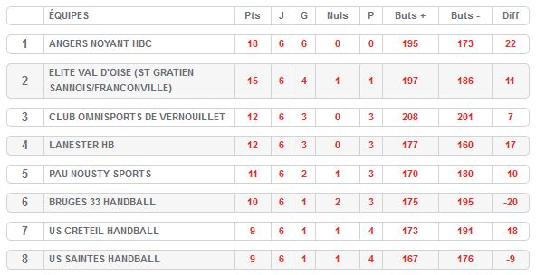 Championnat de National 1 Masculine, groupe A, 6e journée.