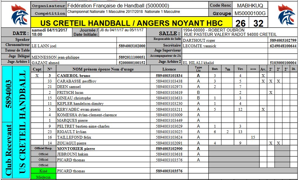 US Créteil Handball – Angers-Noyant HBC : 26-32
