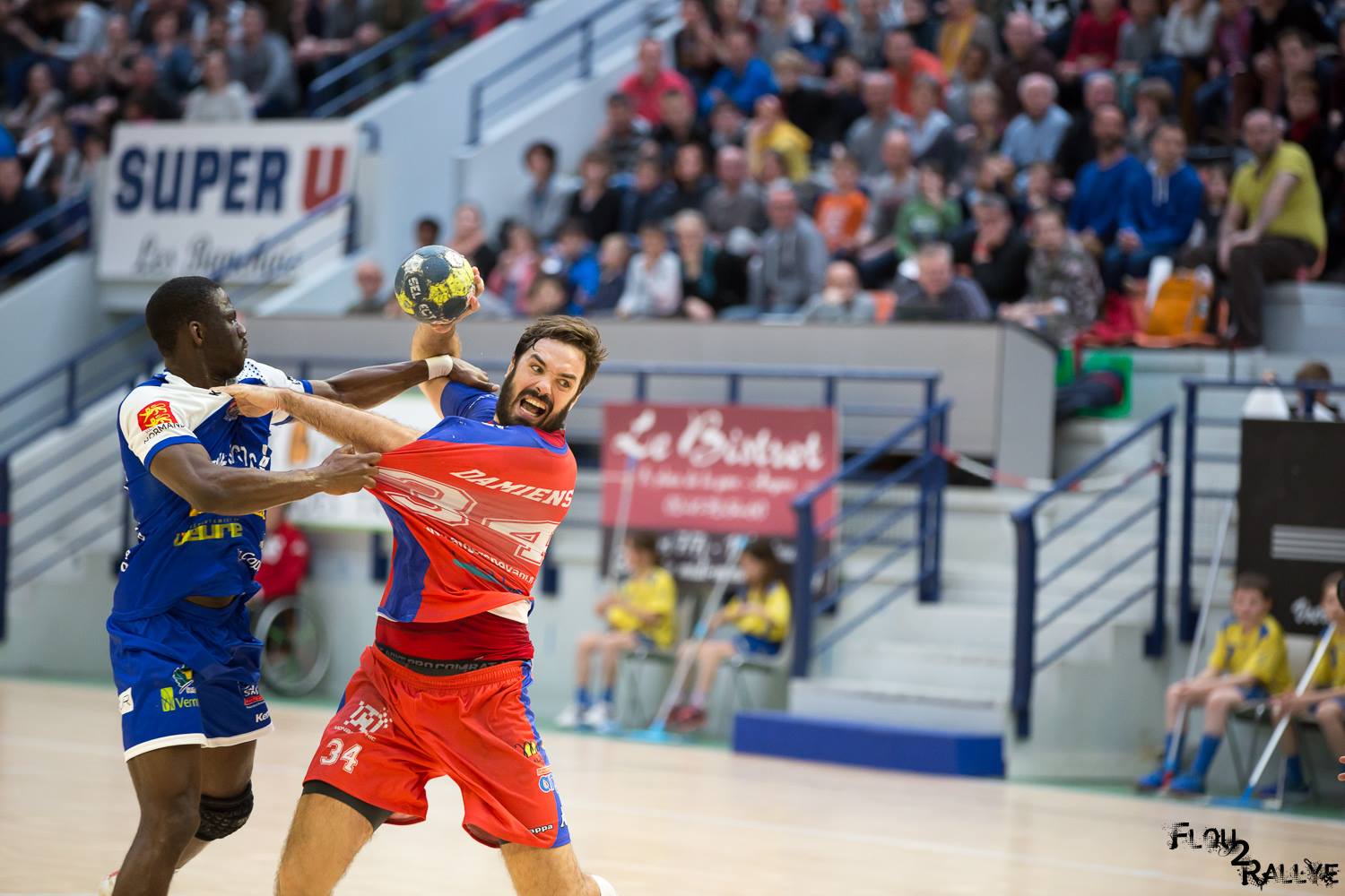On pourra noter que c’est le capitaine Angevin, Ganarul, qui ouvrira le score dans cette rencontre à suspense (1-0, 1’37). Dans ce mano à mano, Vital donne pour la première fois deux buts d’avance à son équipe (10-12, 18’50). Mais, juste avant la mi-temps, l’angevin Lusson signe un doublé sur deux buts de suite (16-14, 29’54). Sacko enchaîne dès le retour des vestiaires (17-14, 30’25). Mais Vernon revient tout de suite à hauteur, en deux minutes, avec un 3-o, conclut par Marrochi (17-17, 32’34). Le match est d’un très bon niveau et très plaisant à suivre, pour le public angevin venu en nombre, encourager son équipe. On se dirige vers le money-time. Dans les trois dernières minutes, on pense que les deux buts consécutifs de Galas, ajouté à un tir à côté de Marrochi, vont être décisifs (28-27, 59’02). Le temps-mort demandé par Vernon porte ses fruits avec l’égalisation des visiteurs par Indjic (28-28, 59’34). L’ambiance est irrespirable et tout le public est tendu par la fin du dénouement du match, où la victoire peut basculer d’un camp à l’autre. Laurent Sorin en profite pour utiliser, à son tour, son dernier temps-mort, afin d’organiser la dernière possession et donc la balle de match. La consigne des vingt dernières secondes : Jouer à sept joueurs de champ, mettre Macira Sacko en point de fixation, pour conclure par un tir de Benoît Galas. Et tout a été respecté à la lettre avec ce dernier but de Galas à trois secondes de la fin du match (29-28, 59’57). Ce dernier finira meilleur buteur du match avec dix réalisations.