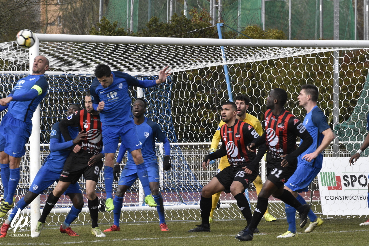 La seconde mi-temps débute tout juste, et sur l’engagement les bleus du GF38 obtiennent un corner que Jessy Benet dépose sur la tête d’Eric Vandenabeele, bien seul au second poteau, qui égalise (1-1, 46e). Tout est à refaire pour les partenaires de Guillaume Ripert qui accusent le coup et laissent les visiteurs reprendre le jeu à leur compte, avec un Steven Pinto-Borges, omniprésent. Le duo d’attaque Sotoca-Belvito, est dans tous les bons coups, et donne bien des soucis à la défense choletaise. Belvito est même tout près de doubler la mise pour ses couleurs, d’une belle tête qu’Imbad Ahamada détourne au prix d’une belle claquette (68e). L’entrée en jeu de Diego Gomez, côté choletais va apporter un nouveau dynamisme dans le jeu choletais, mais la défense grenobloise veille au grain. Un bon coup franc de GBelle est relâché par Maubeu, mais sans conséquence (77e), Deux minutes plus tard Alassane Sango ne tire pas profit d’un bon ballon de Gomez et à la 80e Bakir est séché sur la ligne des 18 m, le coup-franc qui suit ne donnera rien. Les locaux poussent en fin de rencontre, mais le score ne bougera plus. En progrès réels, le SOC obtient un on point, et les Grenoblois préservent leur invincibilité à l’extérieur qui dure maintenant depuis septembre 2017 !