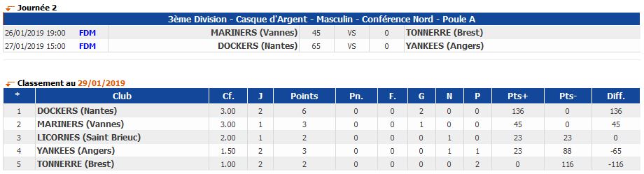 Dimanche 10 février à 14h00 : Tonnerre de Brest (5e) – Yankees Angers (4e).