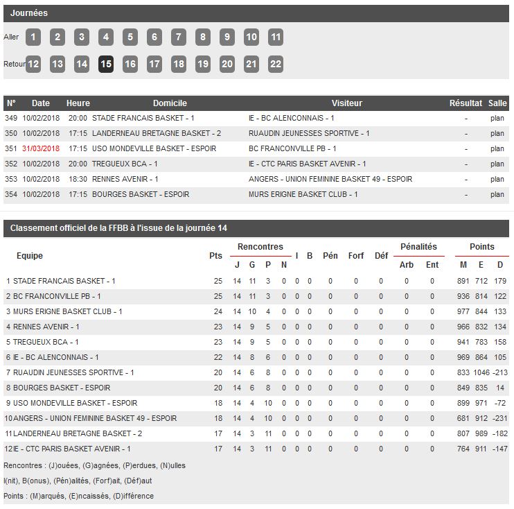 Championnat Nationale Féminine 2, poule C, 15e journée.
