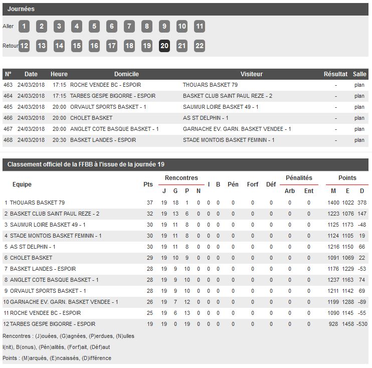 Championnat de Nationale Féminine 2, poule B, 20e journée.