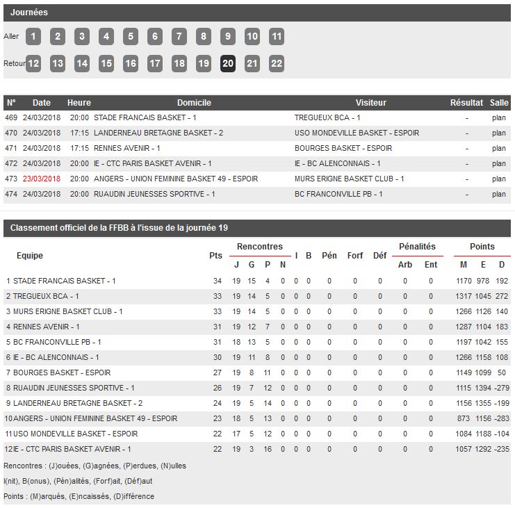 Championnat de Nationale Féminine 2, poule C, 20e journée.
