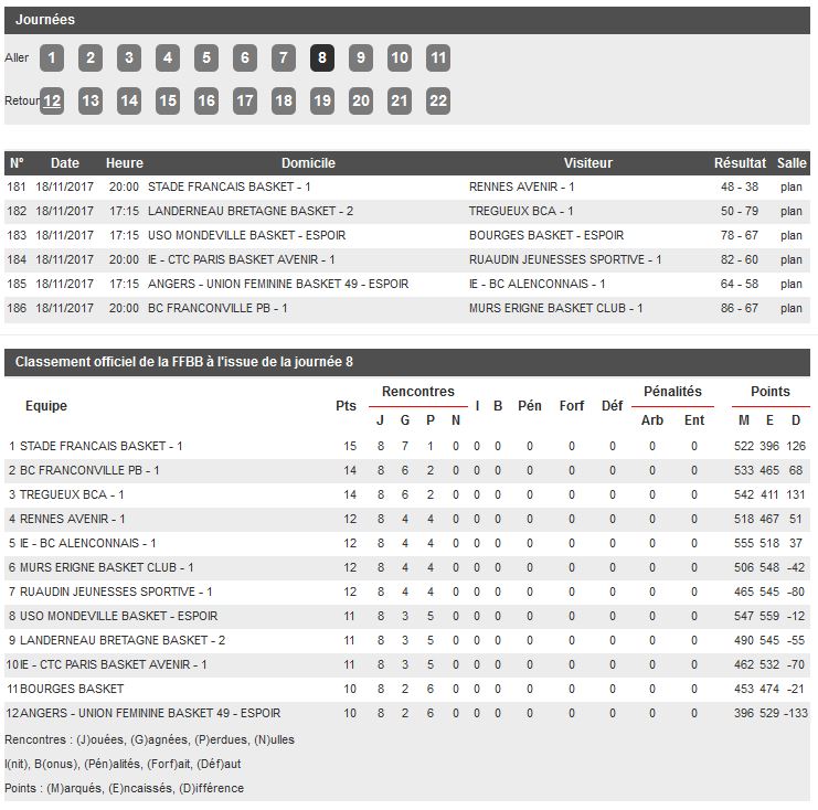Championnat de Nationale 2 Féminine, groupe C, 8e journée.