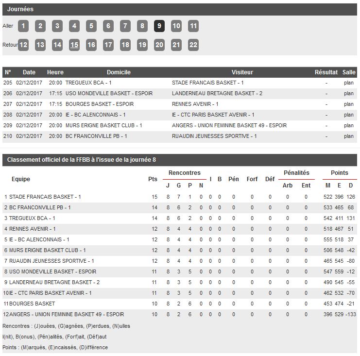 Championnat de Nationale Féminine 2, groupe C, 9e journée.