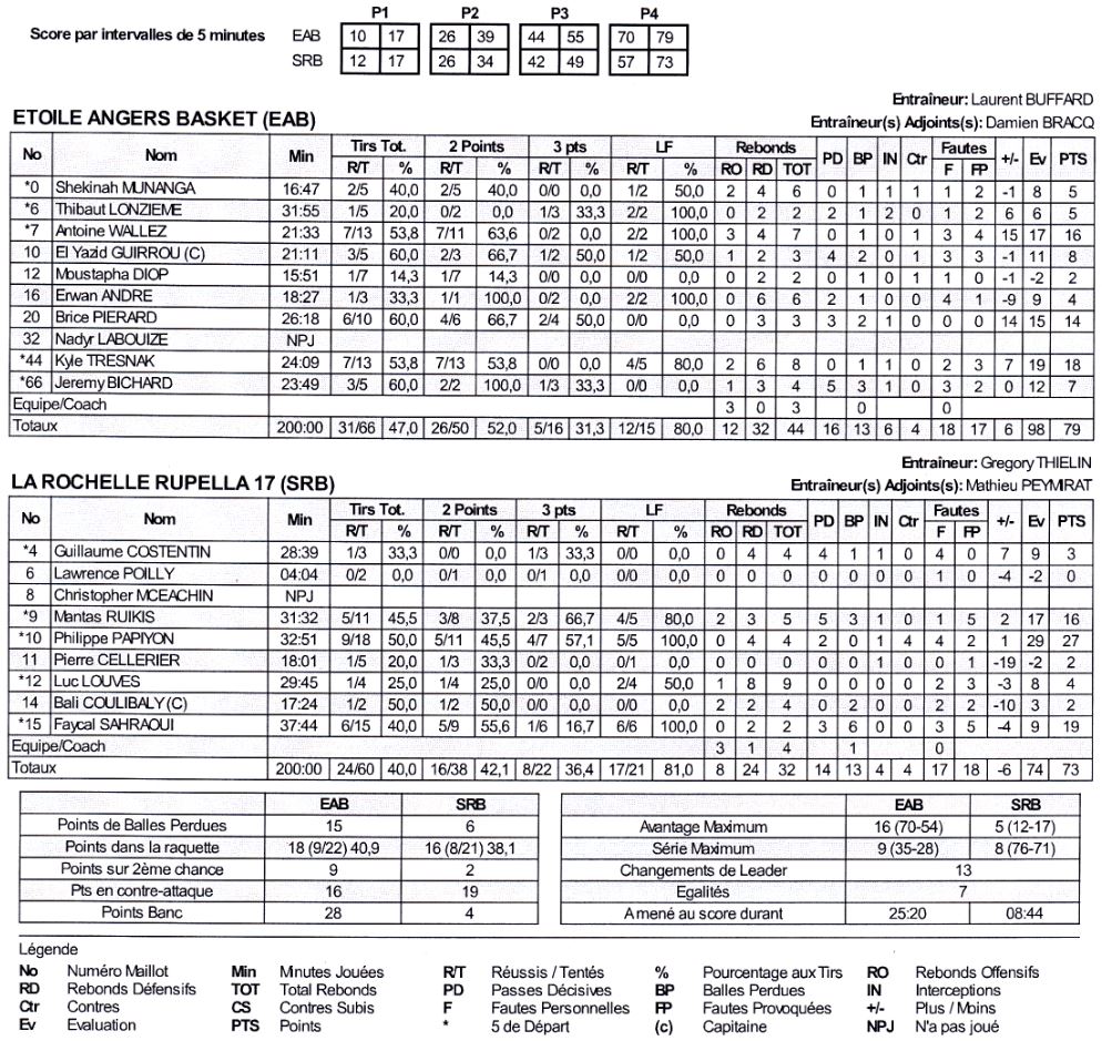 Étoile Angers Basket – La Rochelle Rupella 17 : 79-73
