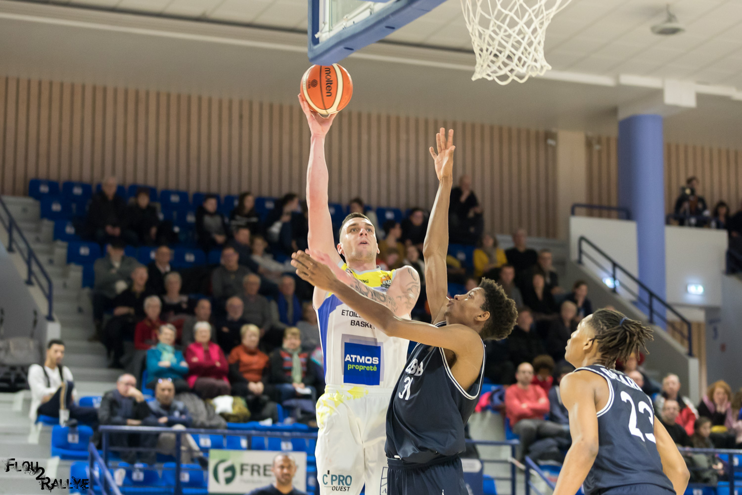 Vendredi soir, les joueurs de l’Étoile Angers Basket se sont baladés sur leur parquet de Jean Bouin face à une très jeune équipe du Centre Fédéral. Après une entame de match parfaite pour l’EAB (9-0 après deux minutes de jeu), c’est le coach adverse qui demanda un temps-mort, afin de remobiliser ces joueurs qui trouvèrent le courage de revenir à quatre points après 4’31 de jeu. Même si beaucoup de marchés ont été réalisés en attaque, les joueurs angevins ont su vite se démarquer au score avec également de nombreuses imprécisions au lancer franc pour le Centre Fédéral (26.3% à la mi-temps). Après un premier quart-temps tout en maîtrise, l’EAB va se relâcher et tomber dans la facilité en fin de première période, mais l’équipe angevine va tout de même rejoindre les vestiaires avec un avantage de +20 points (46-26).