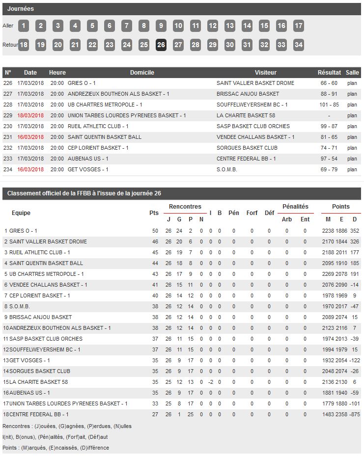 Dans le cadre de la 26e journée du championnat de Nationale Masculine 1, Brissac Aubance Basket s’attendait à un difficile déplacement à Andrézieux et ce fut le cas. Diminué par les absences, Brissac a su tenir défensivement et remporter une précieuse victoire en vue des play-offs. Le BAB n’avait plus gagné à l’extérieur depuis le 5 décembre, c’était à Chartres (92-84), soit cinq défaites consécutives à l’extérieur. Ce succès sera à confirmer contre les Vosgiens de GET Vosges, dès le week-end prochain.