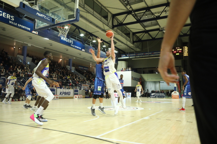 Les Angevins entament bien leur match, avec de l’intensité dans leur jeu et de l’agressivité aux rebonds, malgré quelques approximations défensives. Ttresnak ouvre le score sur deux lancers francs (2-0, 0,23), mais Lesieu égalise à deux points (0’18). Le début de match est équilibré, jusqu’aux trois points de Bichard (7-5, 2’20). Tresnak conclut un 7-0 en faveur des Angevins (11-5, 3’29). Lesieu coupe l’élan local à deux points (11-7, 3’47). Cingala-Mata recolle son équipe à une unité (17-16, 7’56). Tours aura l’occasion de reprendre l’avantage à l’image de De Lattibeaudière qui manque ses deux lancers francs à quinze secondes du buzzer, mais c’est bien l’EAB qui bascule en tête après dix minutes (19-18). Dès le début du deuxième quart-temps, Angers prend ses distances avec un 6-0 en deux minutes, conclut par un dunk rageur de Diop (25-18, 12’09). Watkins calme les ardeurs adverses avec un tir extérieur (25-23, 13’15). Mais Diop, Lonzième, puis Wallez qui conclut par un tir longue distance, donnent neuf points d’avance à leurs couleurs (32-23, 13’24). C’est un festival à trois points, puisque Watkins puis Pierard l’imite à la même distance (35-26, 15’01). Après une perte de balle, qui ne profite pas à l’adversaire, Diop se reprend en inscrivant le panier suivant (39-28, 16’08). C’est à partir de ce moment-là, que les Angevins vont perdre leur basket et n’inscrire que trois petits points en à peine quatre minutes. Tours en profite pour revenir dans le match en réduisant la marque à cinq points, à sept secondes de la mi-temps. A la suite d’une remise en jeu après un temps mort angevin, Guirrou perd la balle et Cingala-Mata marque un panier facile (42-37, 20′).