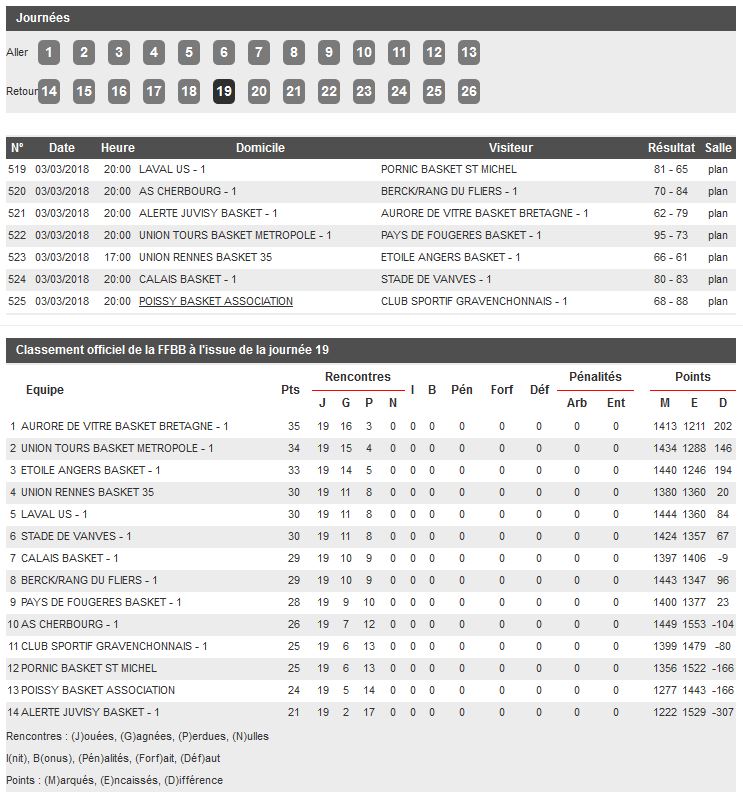 Championnat de Nationale Masculine 2, poule C, 19e journée.