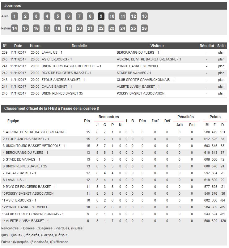 Championnat de Nationale Masculine 2, poule C, 9e journée.
