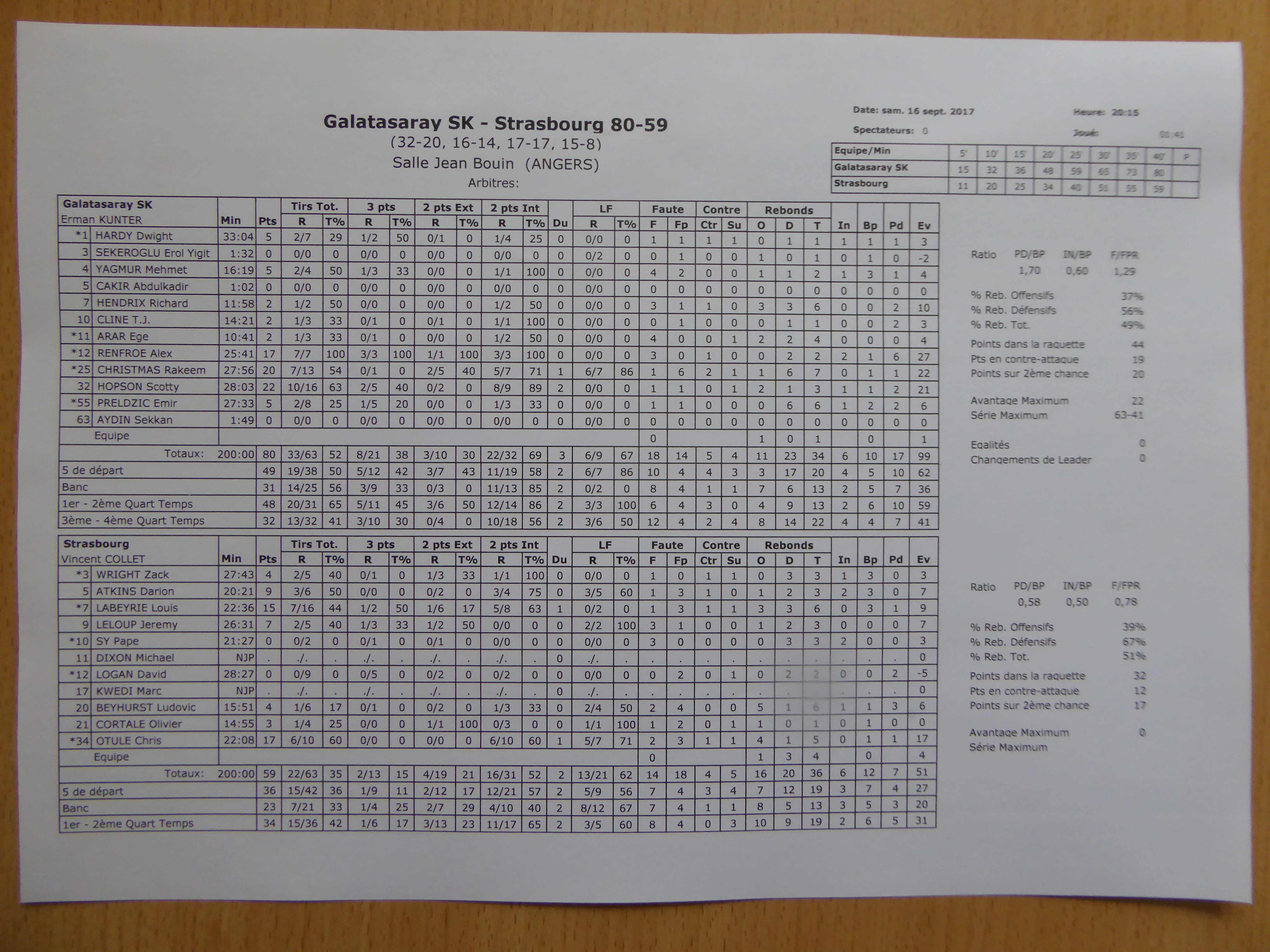 Devant un public venu nombreux assister à la finale, il n’y a pas eu de suspense, entre les turcs de Galatasaray et les Strasbourgeois (80-59). Les joueurs d’Erman Kunter ont dominé et maîtrisé la rencontre, du début à la fin, sans donner la possibilité à la SIG de Vincent Collet, d’y croire. Résultat, l’équipe de Galatasaray inscrit pour la première fois de son histoire, son nom au prestigieux palmarès du Prostars.