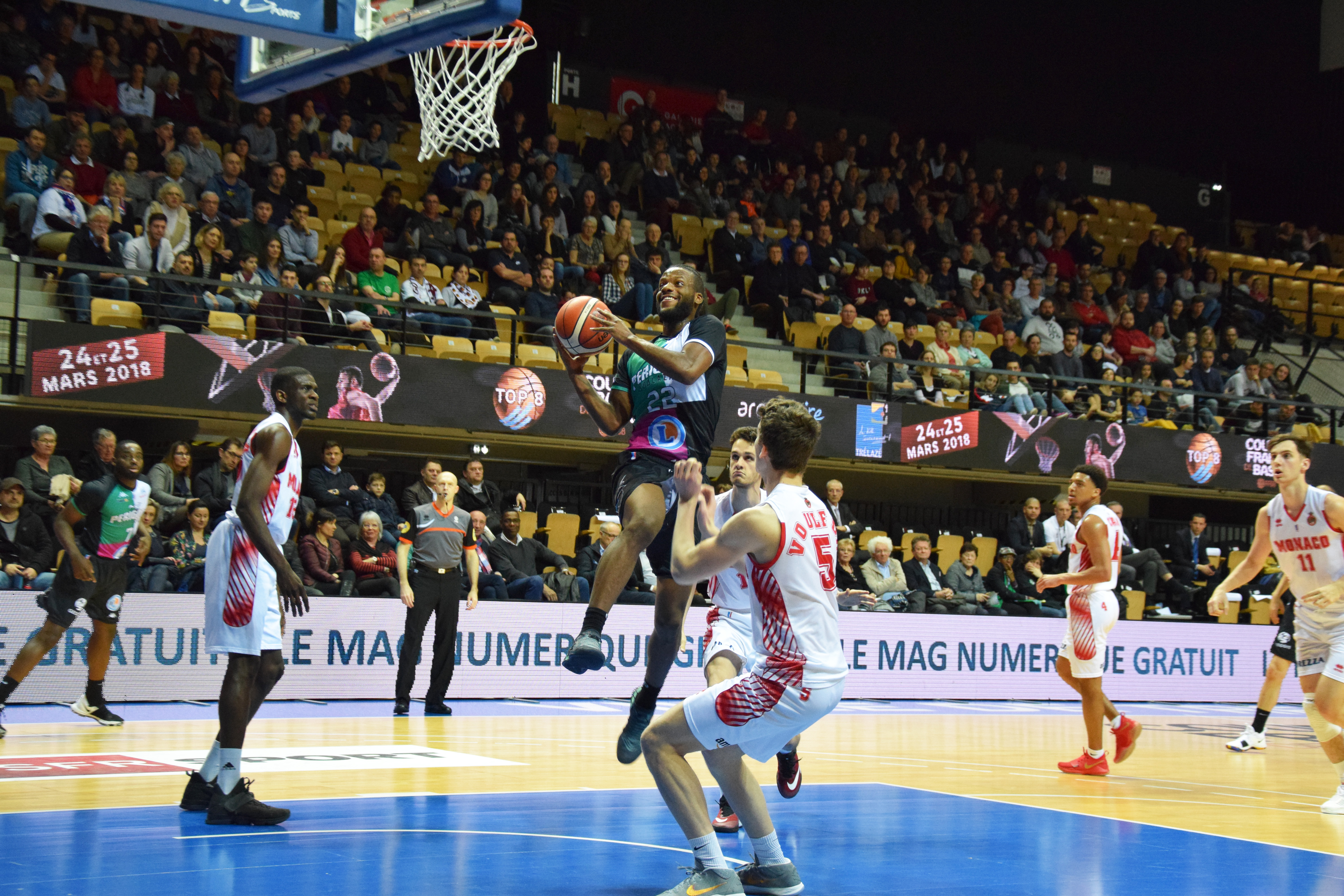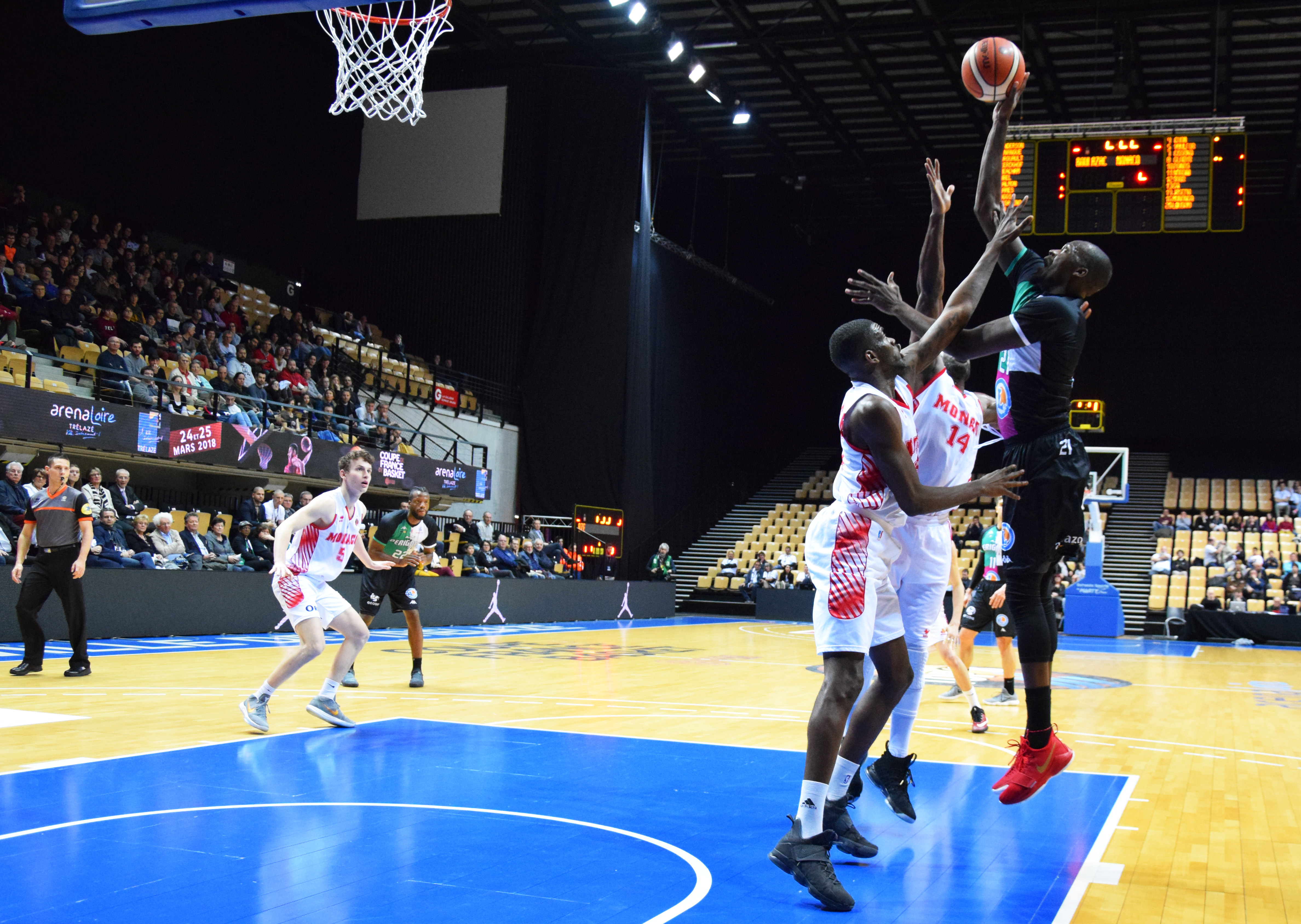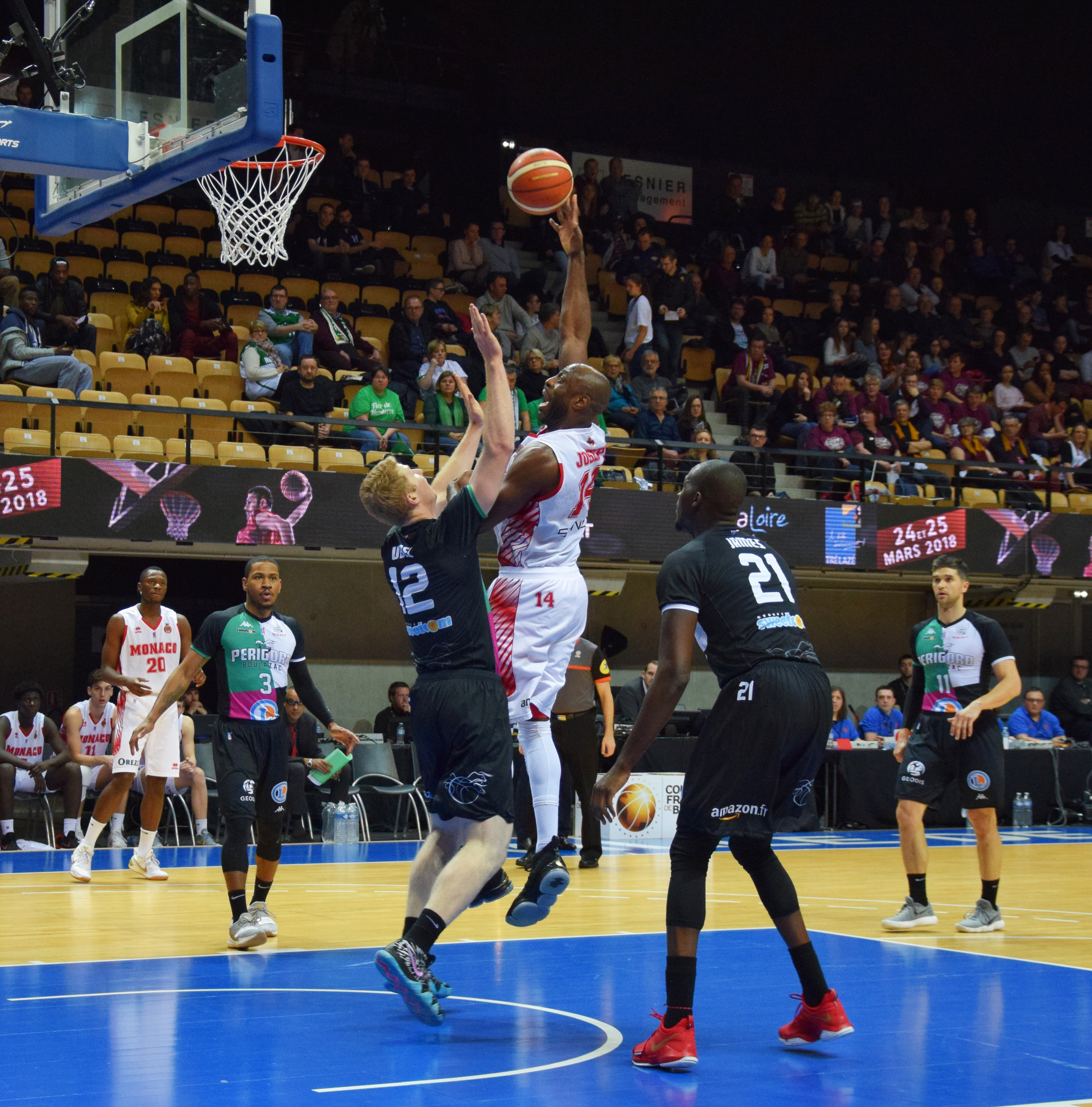 Pour le deuxième quart de finale de la journée, l’AS Monaco était opposée à Boulazac Basket Dordogne, tous les deux pensionnaires de la Jeep Élite. Actuellement leader de la Jeep Élite, Monaco avait décidé de privilégier le championnat, au détriment de la coupe de France, laissant au passage tous ses cadres au repos. Malheureusement, la jeune équipe monégasque n’aura pas existé dans cette rencontre. Boulazac se qualifie sans trembler les demi-finales de la coupe de France.