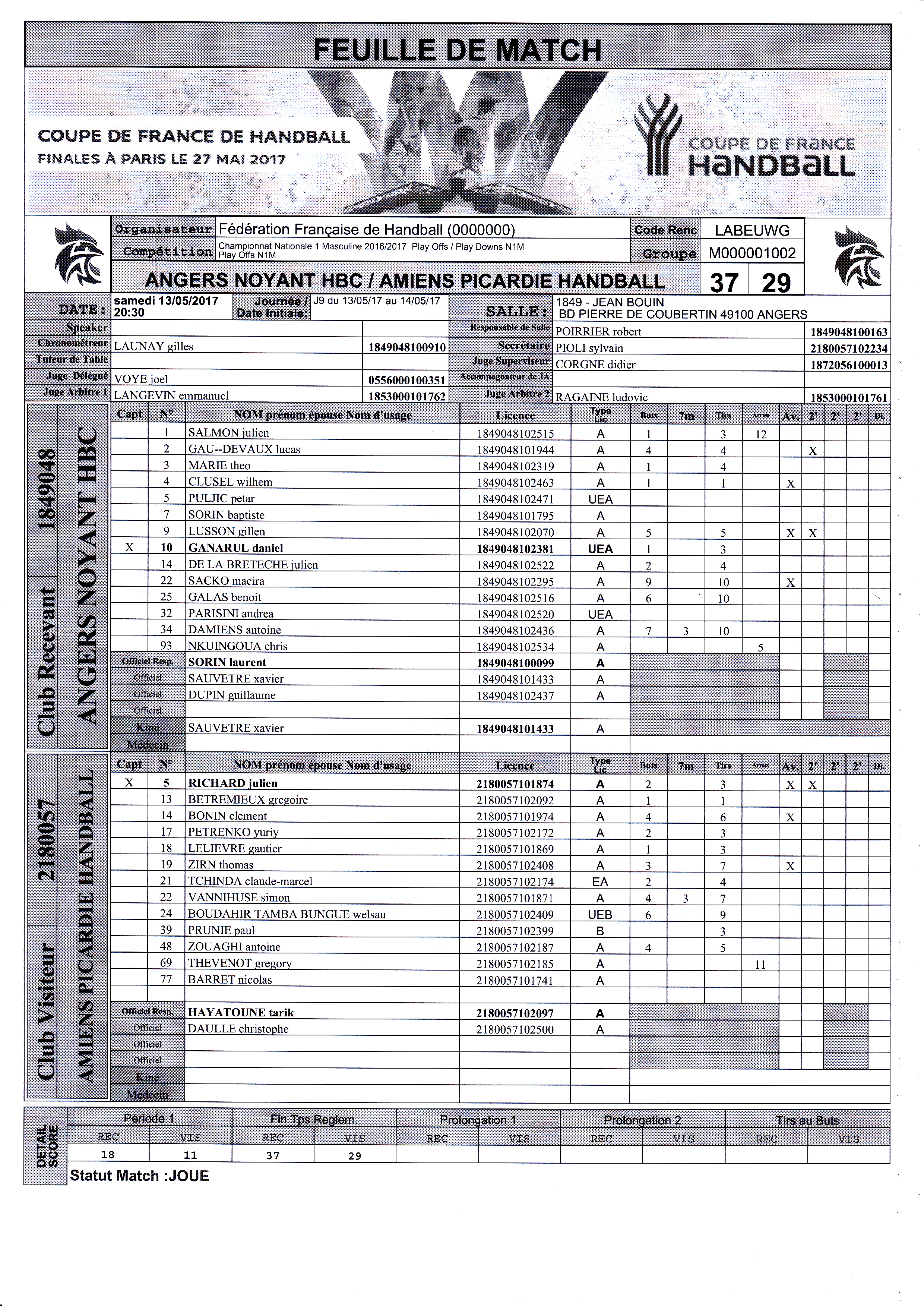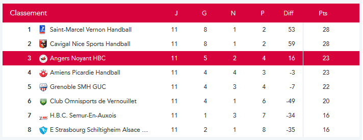 Angers-Noyant HBC – Amiens Picardie Handball : 37-29 (MT : 18-11)