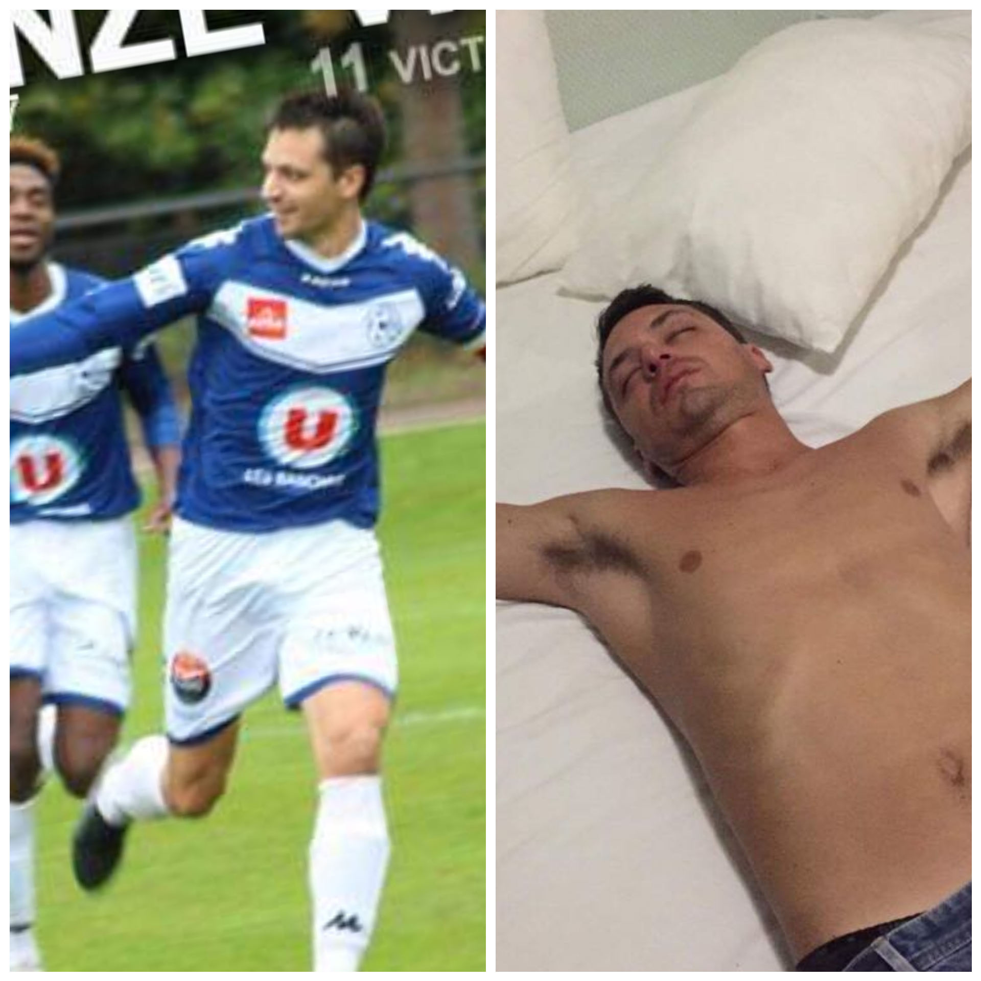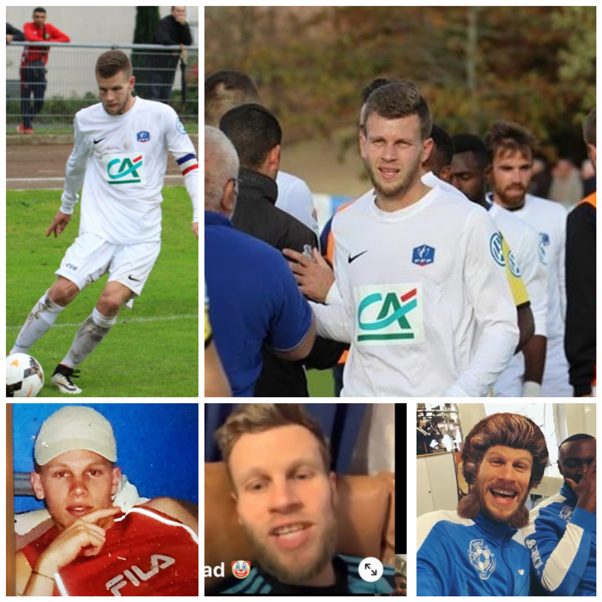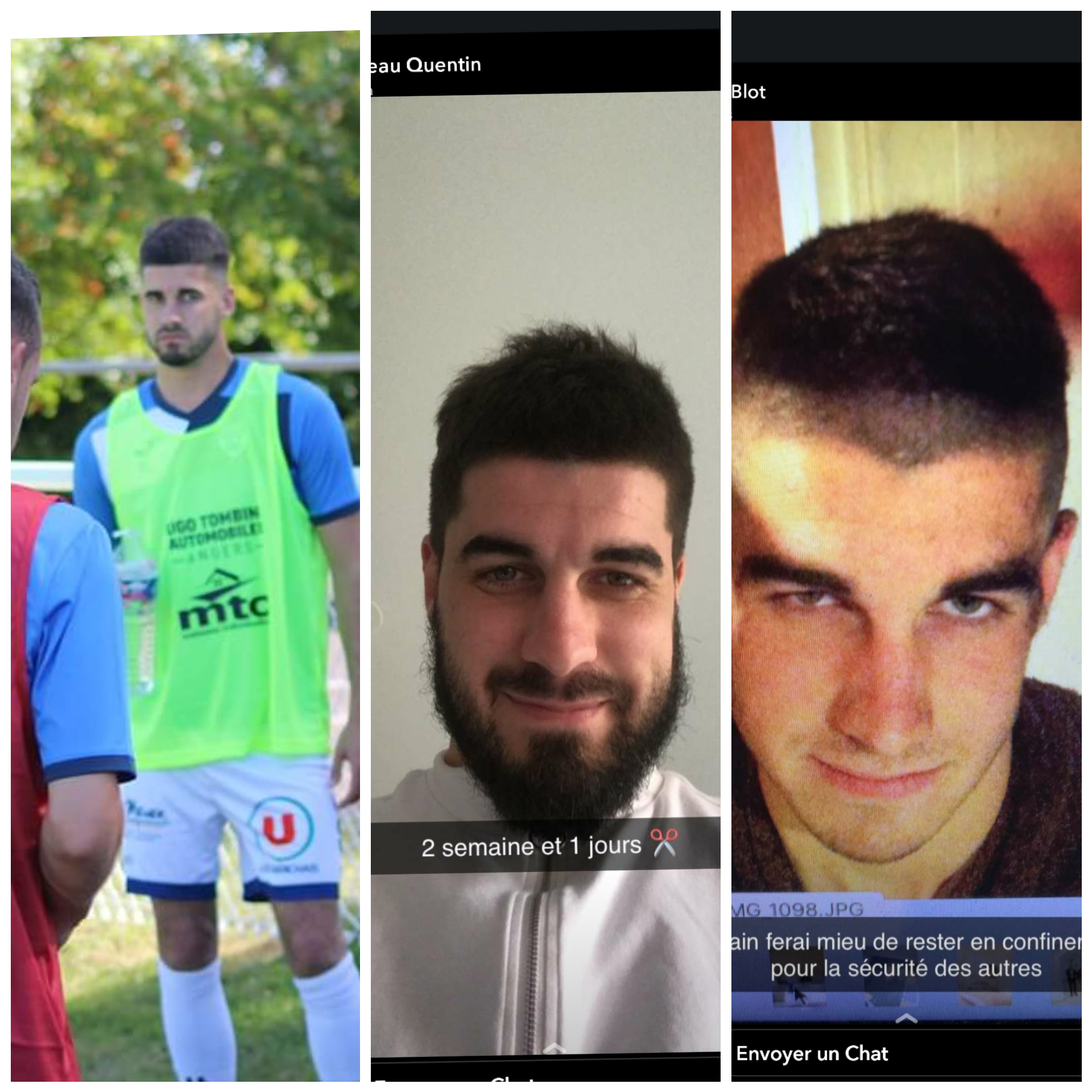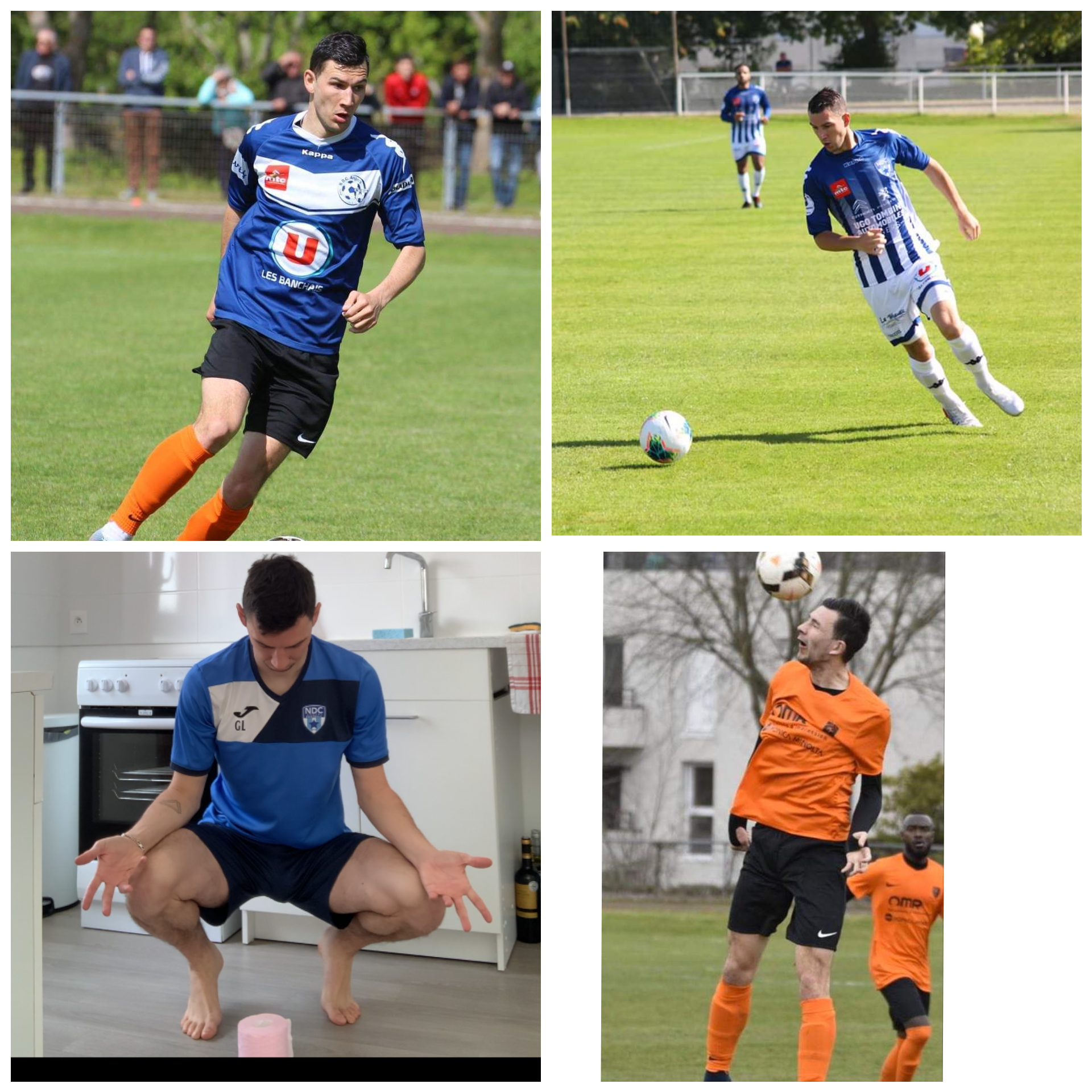 « Benoît CHAPELLE, dit « K9″, le discret du groupe. Arrivé au club, il y a deux ans. Il a su rapidement trouver sa place dans le groupe R1. En cette période de confinement, sa femme doit lui mettre des p’tits ponts dans le jardin (joueuse senior 1 à la Croix Blanche Angers Football). »