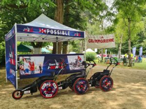 Stand de l’association avec les fauteuils Team I-Romane lors de la Grammoirienne.