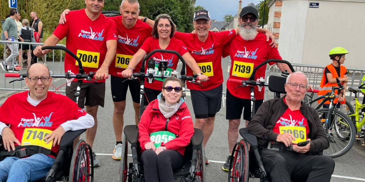 C’est fin 2023, que Pascal a créé l’association Team I-Romane. Le but de cette association est d’acheter du matériel et de le prêter à des personnes qui n’ont pas forcément la capacité financière d’acheter un fauteuil, ou qui veulent simplement se tester sur une course. L’objectif est très clair : faire passer des bons moments aux personnes qui sont en situation de handicap ainsi qu’à leurs familles. « Cette idée nous vient des Etats Unis, il y a deux frères qui ont créé la fondation Kyle Pease et qui nous avaient invités à Atlanta avec Romane quand on a commencé le triathlon pour faire le semi-marathon d’Atlanta. Malheureusement, nous n’avons pas pu nous y rendre, mais nous gardons l’idée en tête. L’année dernière, ils ont réussi à aligner cinquante fauteuils pour le semi-marathon d’Atlanta. Je pense que nous n’irons pas jusqu’à cinquante fauteuils, mais je trouve l’idée extraordinaire quand on voit le bonheur que cela procure aux personnes qui participent et à ceux qui les accompagnent. Cela donne un véritable sens au partage et à l’intégration du handicap par le sport. Pour l’instant, on prête uniquement des fauteuils pour la course à pied, car c’est plutôt facile à pousser, cela ne demande pas forcément d’entraînement alors que ce n’est pas le cas pour les vélos par exemple. Si on achetait des vélos, cela voudrait dire qu’ils seraient immobilisés pendant toute une période d’entraînement. On le fera peut-être un jour, mais j’ai préféré commencer par les fauteuils. Aujourd’hui, l’association a deux fauteuils et Romane a le sien. Nous, ce qu’on veut, c’est que les fauteuils soient tout le temps sur des courses, pas qu’ils restent dans notre garage. La seule chose que je demande aux participants qui empruntent les fauteuils, c’est de prendre du plaisir et de m’envoyer une photo. » ajoutait Pascal.