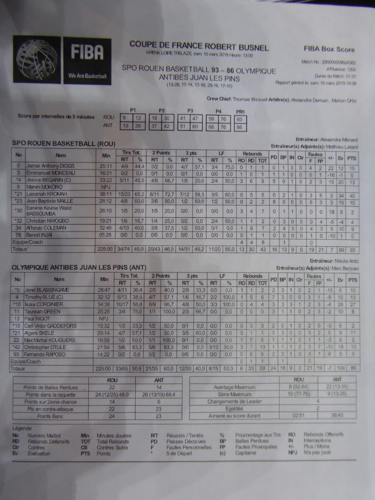 Abasourdit, Antibes a été mené au score pour la première fois du match après deux minutes de jeu en prolongation. Rouen avait repris l’ascendant psychologique sur le match et on a eu le droit à une prolongation plus que serrée. Mais à deux minutes de la fin, Rouen s’est envolé pour ne plus être rattrapé. Le club de Pro B (Rouen) se dirige donc pour les demi-finales de la coupe de France en s’imposant sur le score 93 à 86.