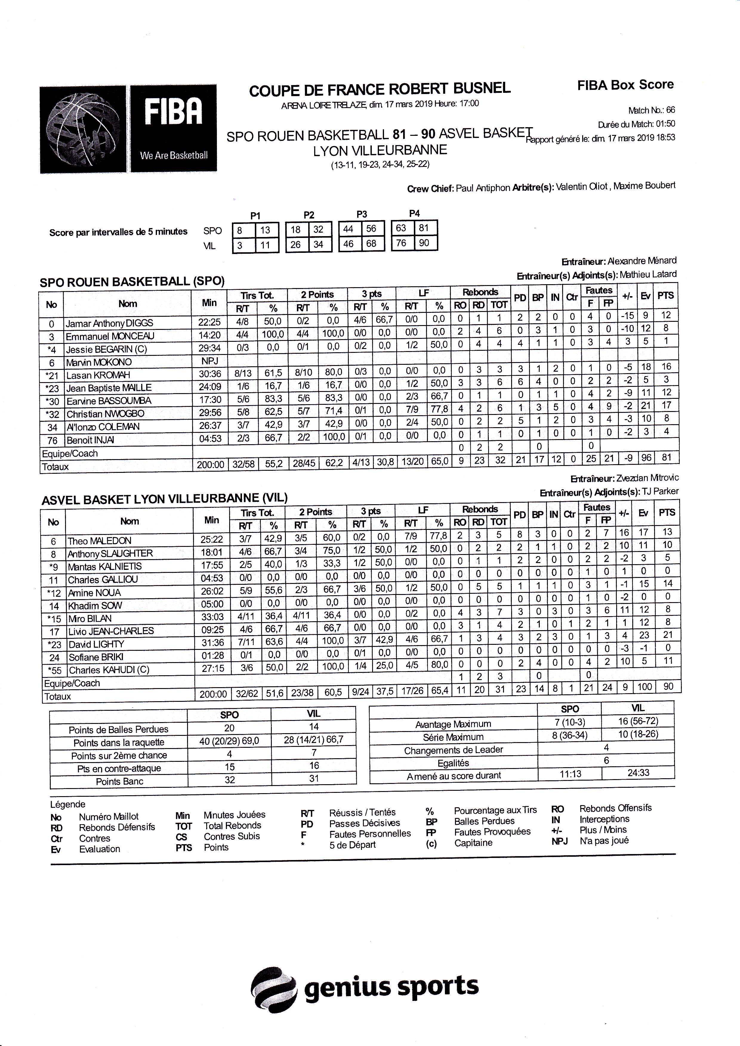 Dans le dernier acte de ce match. Rouen va multiplier les fautes et perdre en confiance tout au long du quart-temps. L’ASVEL va même avoir une avance de seize points dans ce quart-temps qui sera réduit dans les derniers instants du quart-temps, mais l’ASVEL a maîtrisé son sujet au bon moment et cela permet à l’ASVEL de rejoindre Le Mans en finale de la Coupe de France de Basket en s’imposant 90 à 81.