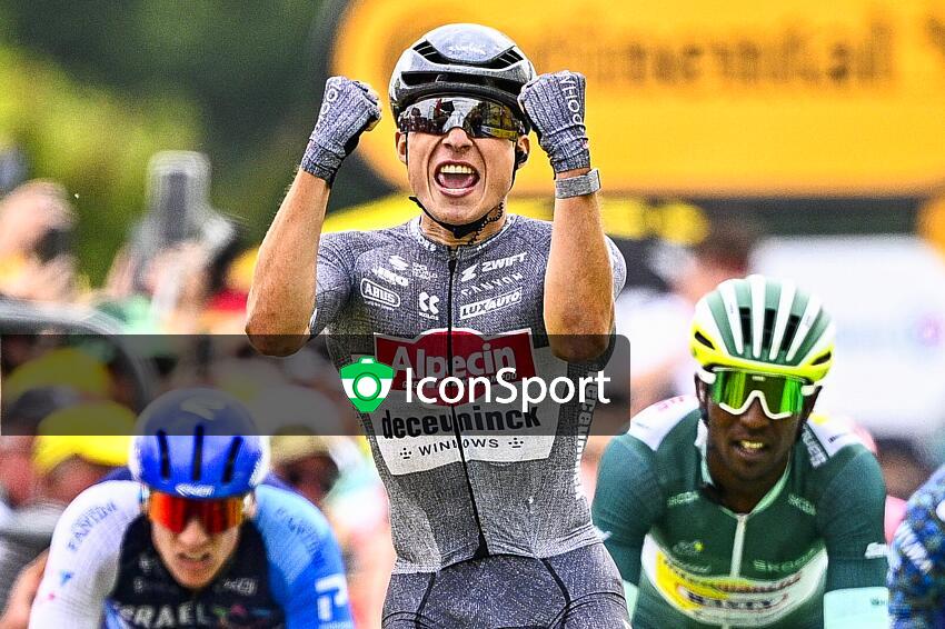 Elle a tardé à venir, mais elle est là ! Après une semaine et demie de course, Jasper PHILIPSEN (Alpecin-Deceuninck) a remporté la 10e étape du Tour de France, lors de l’arrivée à Saint-Amand-Montrond. Parfaitement emmené et déposé par son dernier lanceur, le champion du monde Mathieu VAN DER POEL, le sprinteur belge n’a pas eu de problème pour s’adjuger la victoire. Il devance le maillot vert, Biniam GIRMAY (Intermarché-Wanty), et Pascal ACKERMANN (Israel-Premier-Tech). Après deux deuxième place, à Saint-Vulbas (5e étape) et à Colombey-les-Deux-Eglises (8e étape), mais aussi un déclassement à Dijon (6e étape), le coureur de 26 ans a décroché sa 7e victoire sur le Tour de France, sa première sur cette édition.