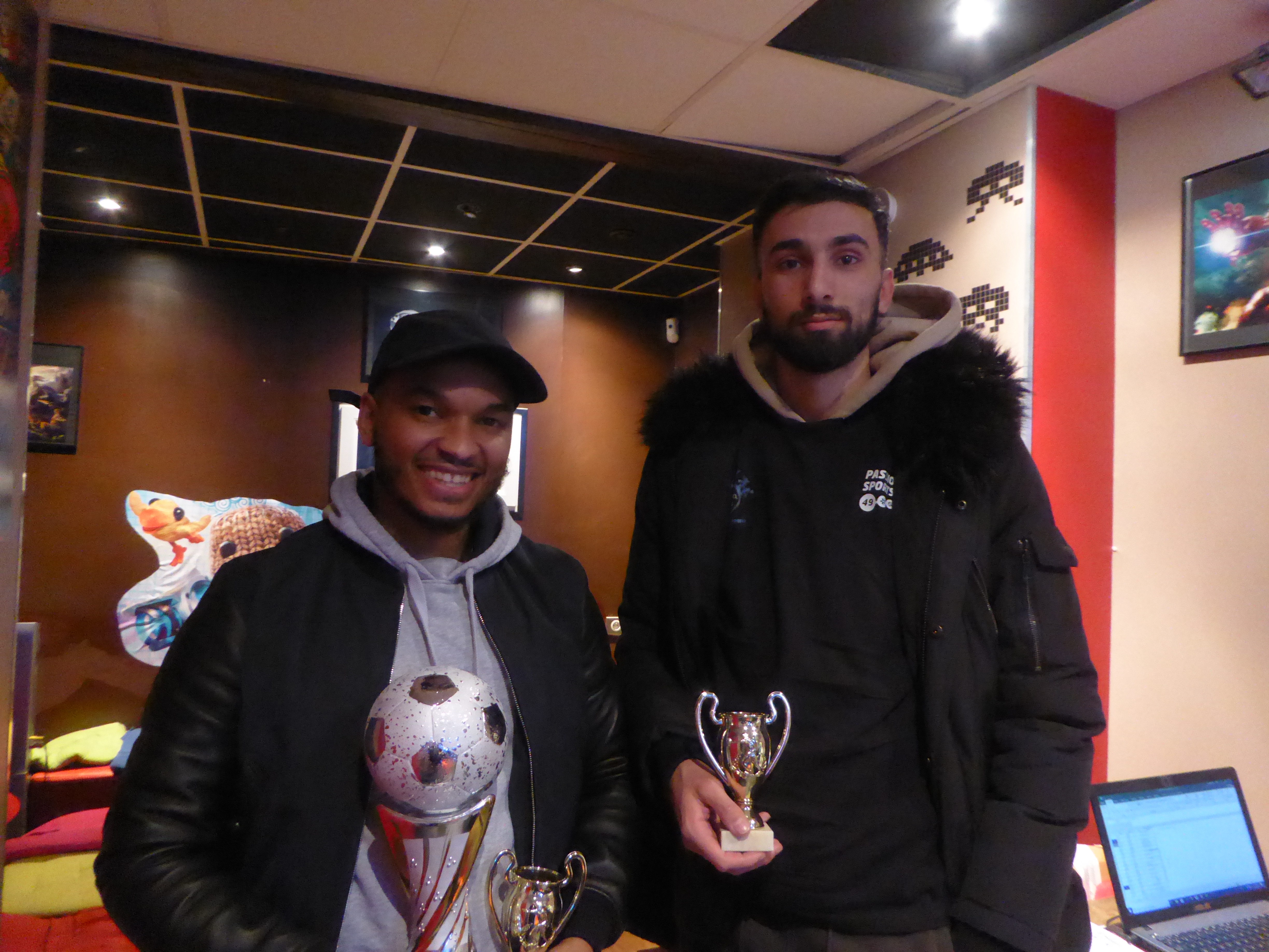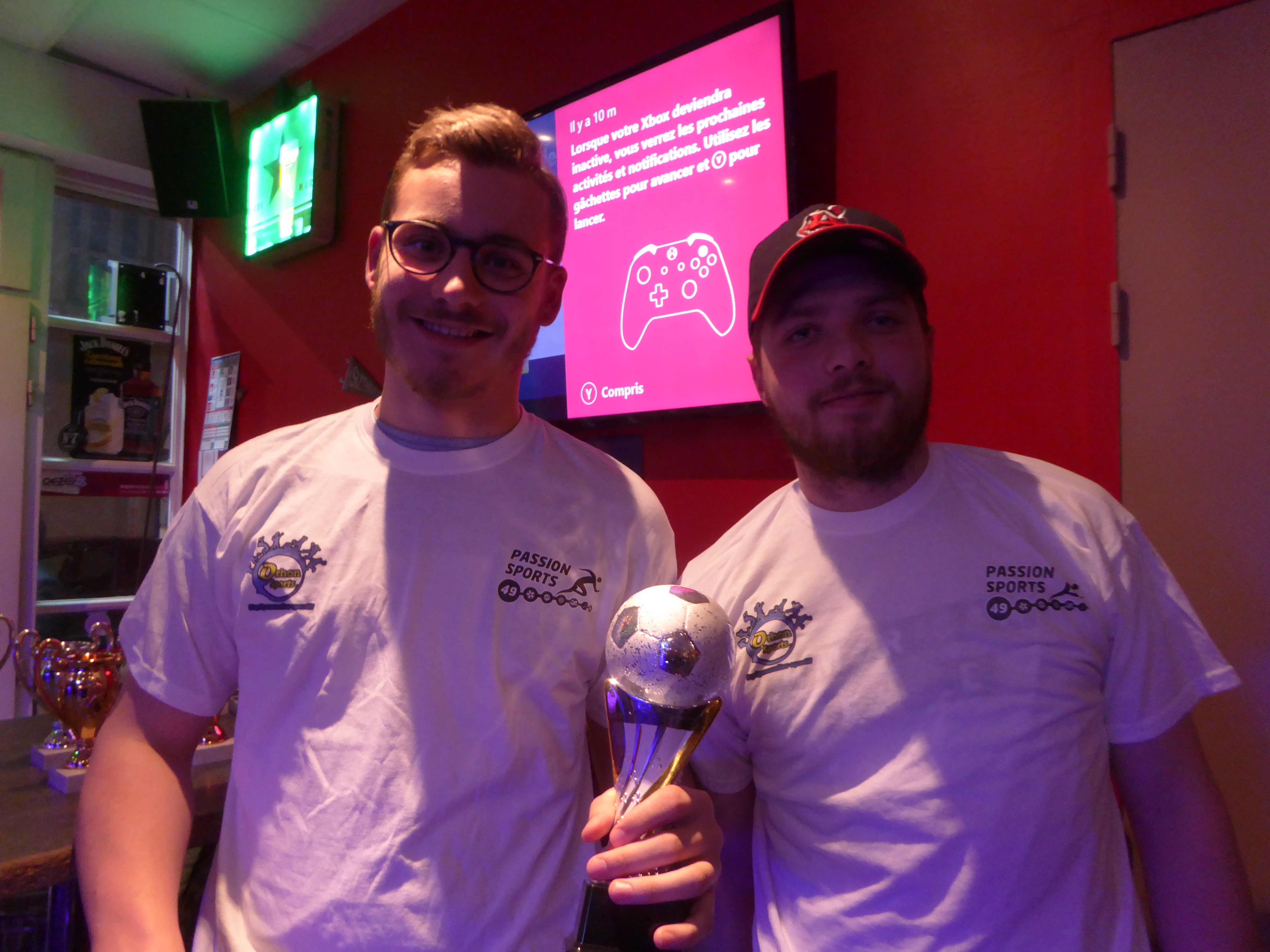 Une fois les trois matchs de poule joués, un classement a été effectué pour pouvoir entreprendre les phases finales. Cependant, avant de poursuivre le tournoi, les joueurs avaient le droit à un kebab offert et à une boisson au bar, qui leur a permis de reprendre des forces avant d’attaquer les phases finales ! La phase finale principale regroupait les deux premières équipes de chaque groupe alors que la phase finale consolante regroupait les deux dernières équipes de chaque groupe. Ces phases finales étaient à élimination directe. Une fois les quarts de finale passés, place aux demi-finales, qui permettaient aux joueurs concernés d’accéder à la finale tant attendue. Les grands gagnants de la première édition EA SPORTS par Passion Sports 49 sont donc Mehdi ABASSI et Aymeric SIRVEN. Ces derniers repartent avec un très beau trophée.
