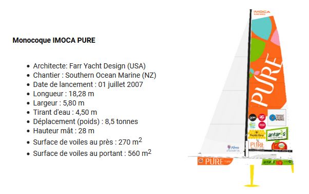 Conçu pour Loïc Peyron à l’occasion du Vendée Globe 2008-2009, ce plan Farr compte trois Vendée Globe et deux Barcelona World Race à son compteur. Le bateau a subi de profondes modifications depuis son lancement tout en conservant l’esprit malin de son premier skipper. C’est Loïck Peyron qui avait inauguré le principe des casquettes amovibles pour mieux protéger le navigateur solitaire, de même qu’il avait inauguré un fond de coque à géométrie variable en fonction de l’allure du bateau, et ce grâce à deux petits appendices sur le tableau arrière. En 2012, quand Jean Le Cam acquiert le bateau, il lui fait subir une cure de jouvence en l’allégeant considérablement de manière à garder une machine compétitive. S’il aura du mal à lutter contre les foilers de dernière génération, Romain Attanasio sait qu’une Transat Atlantique et surtout un Vendée Globe, c’est long. Son objectif premier sera donc de finir et qui sait d’accrocher par là-même une place dans le top 10.