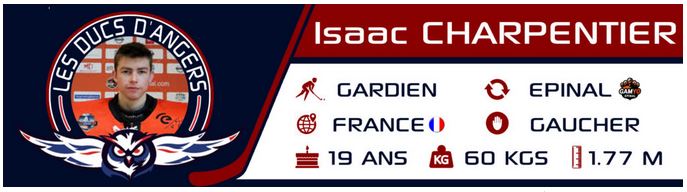 - Le mot du coach (Brennan SONNE) : « Ce sera le back-up de Florian HARDY. C’est un jeune gardien de 19 ans qui a déjà disputé 10 matchs en Magnus la saison passée. Il a le désir de jouer et de progresser quelque soient les efforts à consentir. Son excellent état d’esprit lui permettra de développer l’immense potentiel qui sommeille en lui.