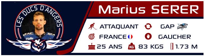 - Le mot du coach (Brennan SONNE) : « Marius est un jeune joueur, rapide, et un énorme travailleur qui surfe sur une exceptionnelle passion du hockey. J’apprécie particulièrement son instinct de « Penalty Killer », il est très doué pour tuer les offensives adverses lorsque son équipe est en infériorité ».