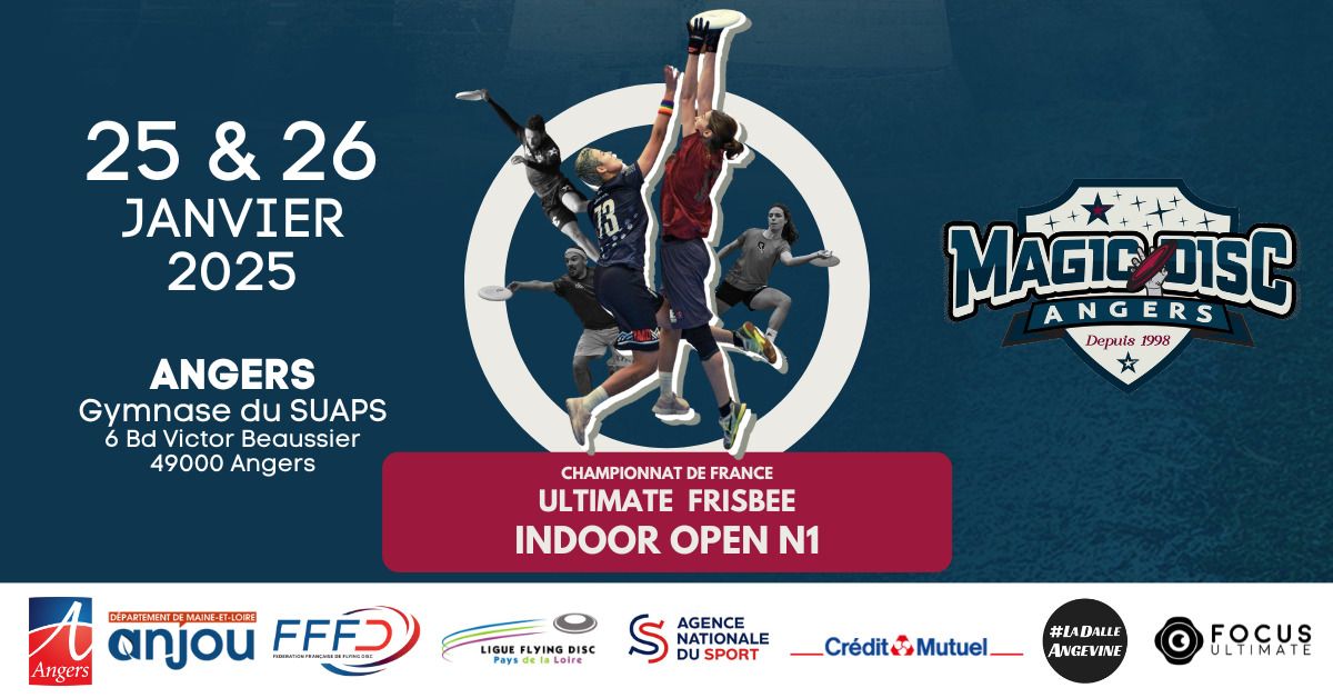 La compétition, organisée dans le quartier de Belle-Beille, réunit les meilleures formations du pays, parmi lesquelles on retrouve l’équipe des Magic Disc d’Angers. Qualifiée pour la “poule haute”, l’équipe locale disputera les places de 1 à 6 faces à Pornichet, Besançon, Noisy-le-Sec, Blois et Strasbourg. En parallèle, les équipes de La Flotte, Dijon, Veauche, Bordeaux, Villersexel et une seconde formation de Pornichet tenteront de se maintenir en National 1 ou d’éviter la relégation en National 2.